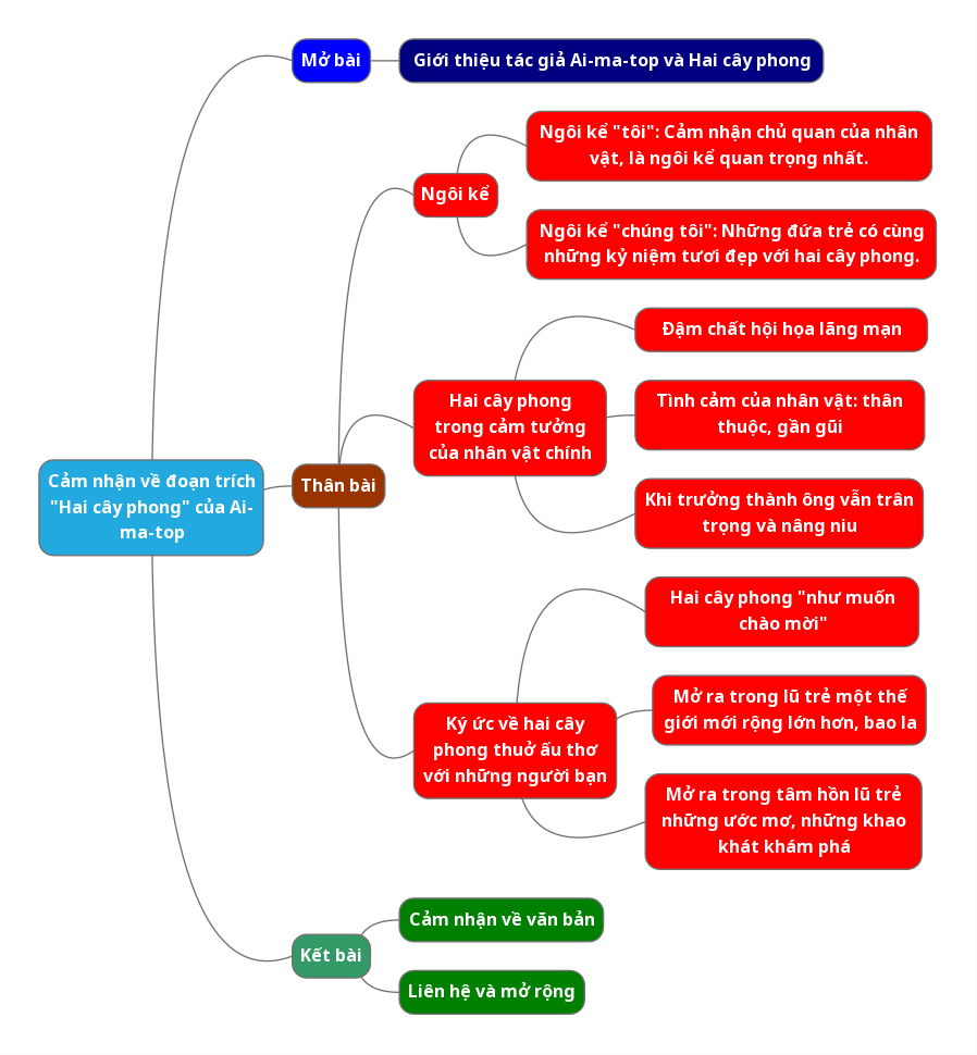 Sơ đồ tư duy Cảm nhận về đoạn trích Hai cây phong năm 2021:
