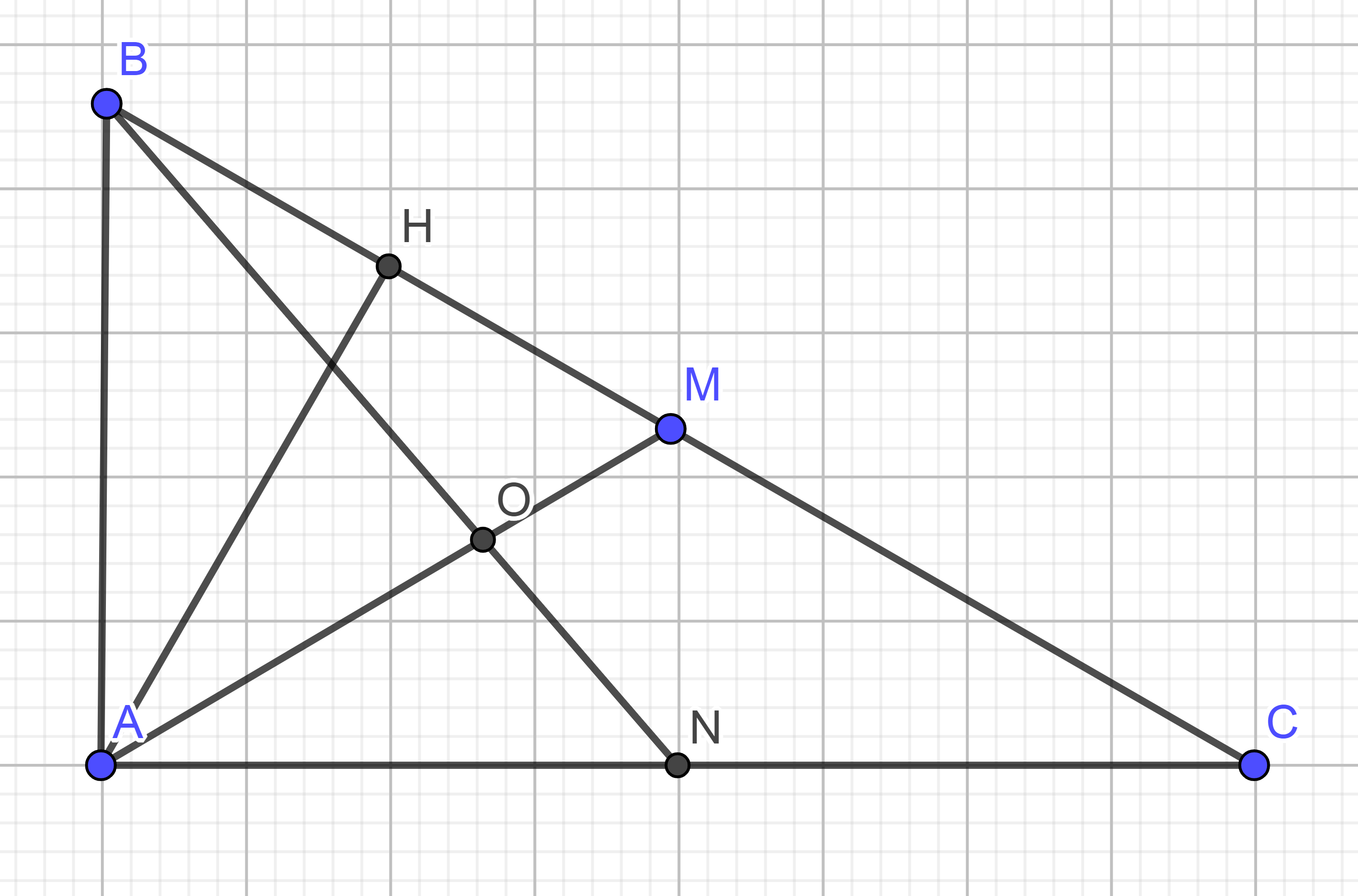 c)Gọi N là trung điểm của AC và O là giao điểm của AM và BN .Gỉa sử AB =4cm .Tính độ dài AO