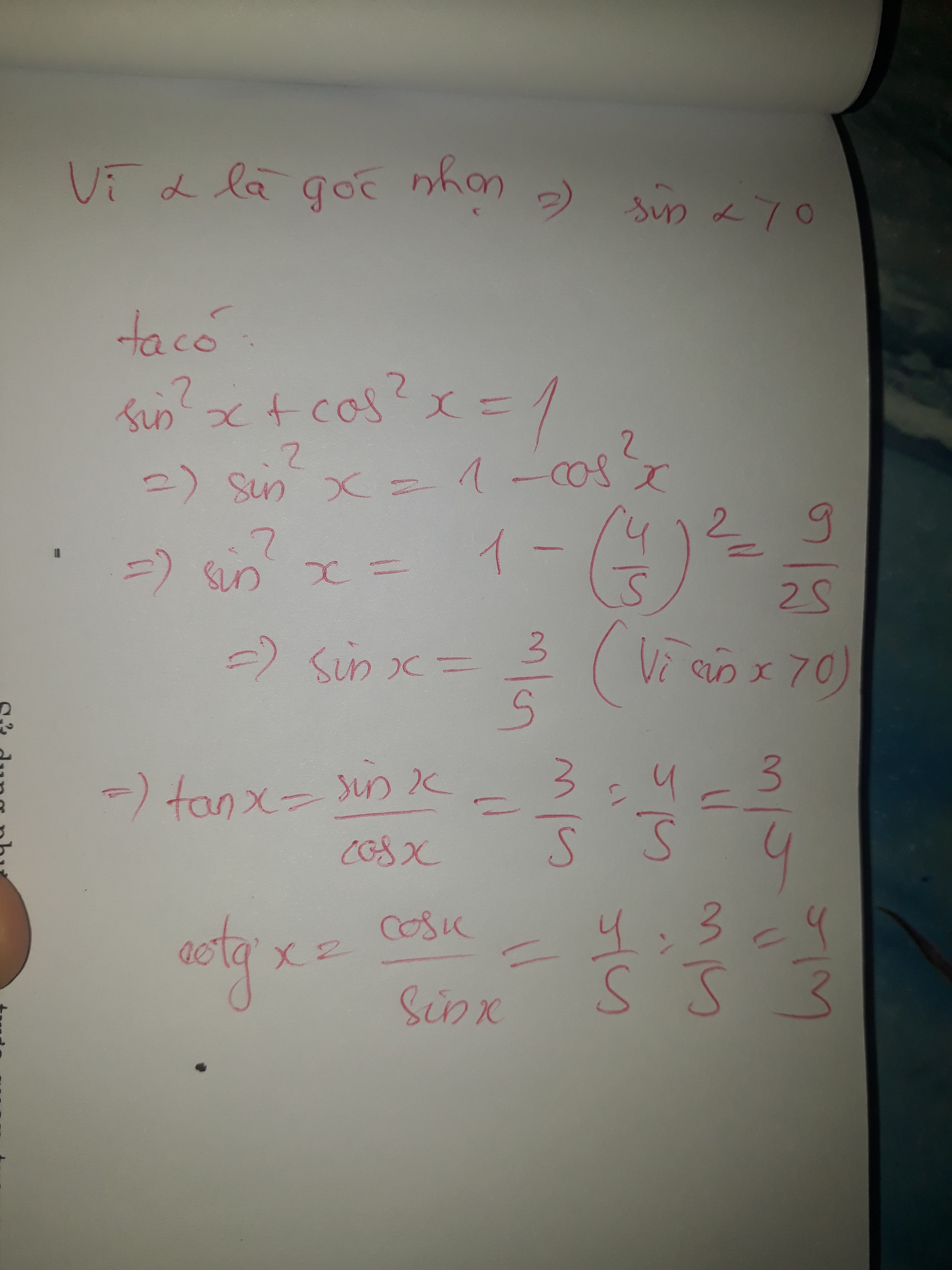 = > \tan x = \frac{{\sin x}}{{\cos x}} = \frac{{ - \frac{3}{5}}}{{\frac{4}{5}}} = \frac{{ - 3}}{5}.\frac{5}{4} = \frac{{ - 3}}{4}\\