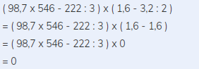 98,7 x 546 - 222 * 3 ) x ( 1,6 -3,2 * 2 )