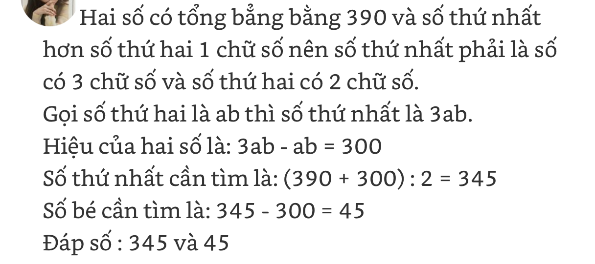 số bé là một số có hai chữ số và khi viết thêm chữ số ba vào bên trái số bé ta được số lớn như vậy số lớn hơn số bé 300