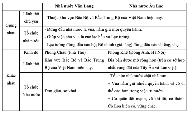 * So sánh nhà nước Văn Lang và Âu Lạc