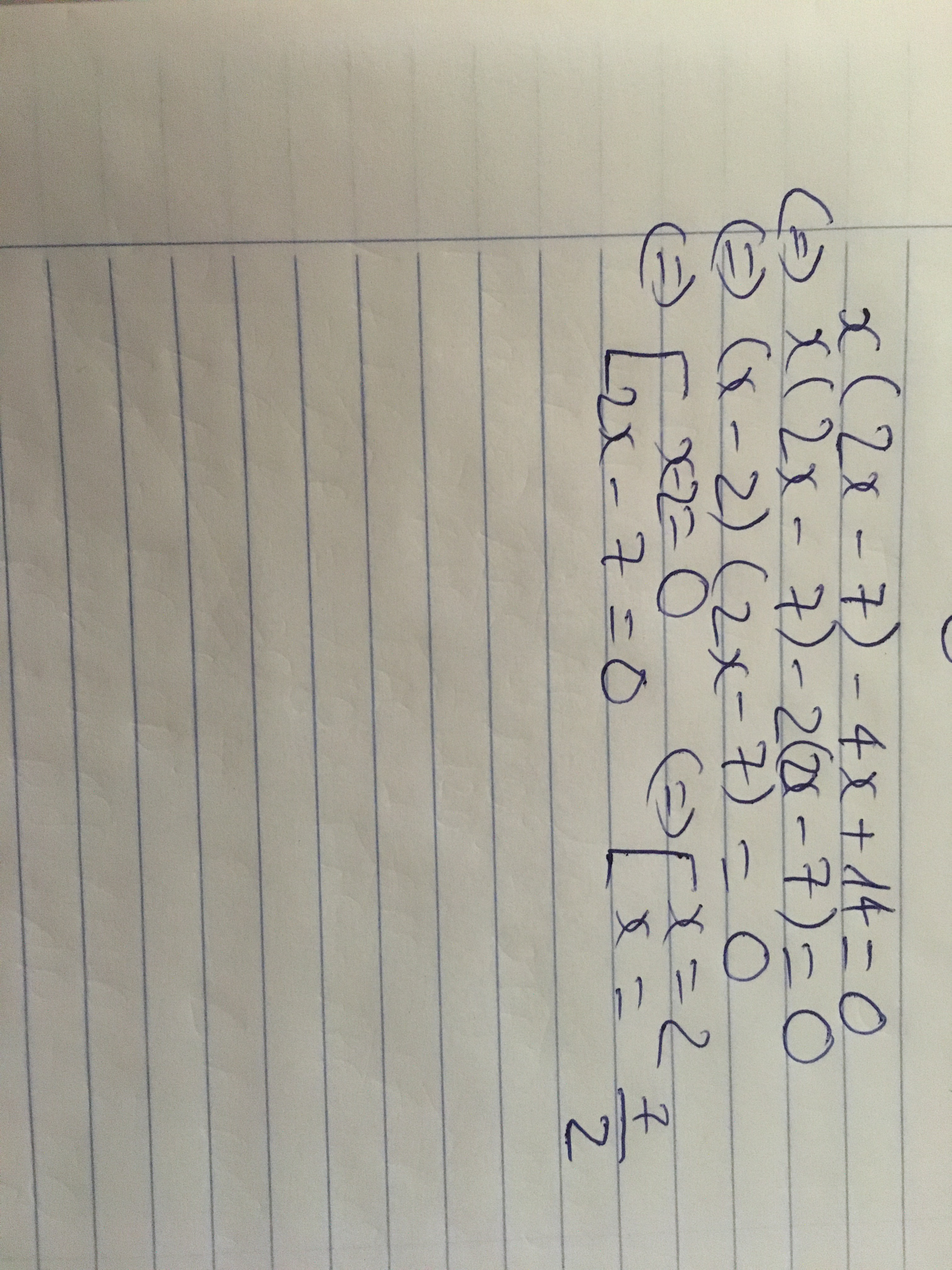 x(2x-7)-4x+14=0