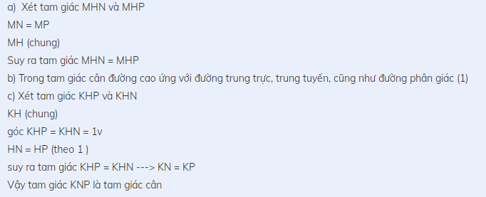 c) : Gọi K là điểm nằm trên tia đối của tia HM . C/m : tam giác KNP cân