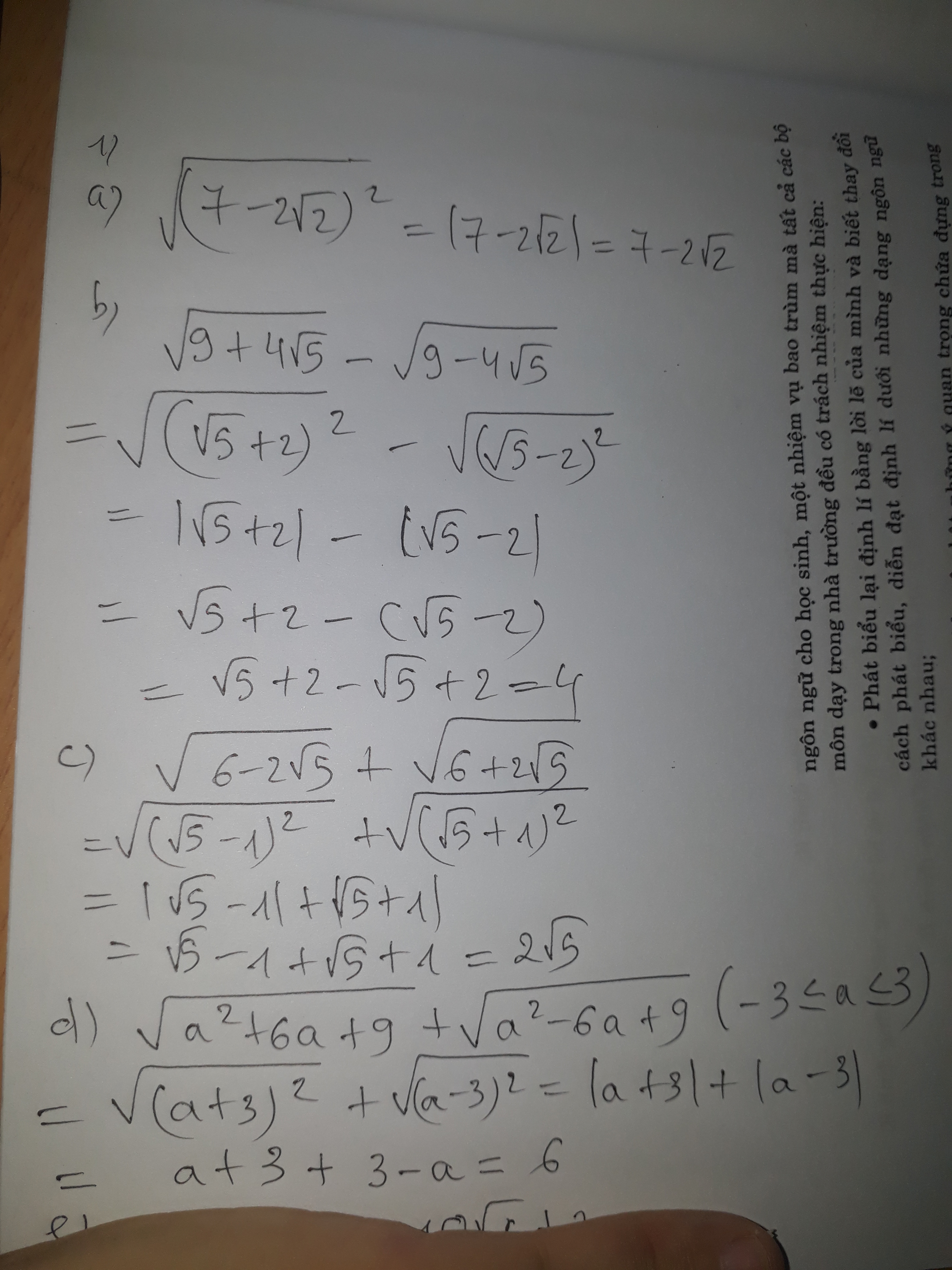 d) căn a^2 + 6a +9 + căn a^2 - 6a + 9 ( -3 < hoặc = a < hoặc = 3)