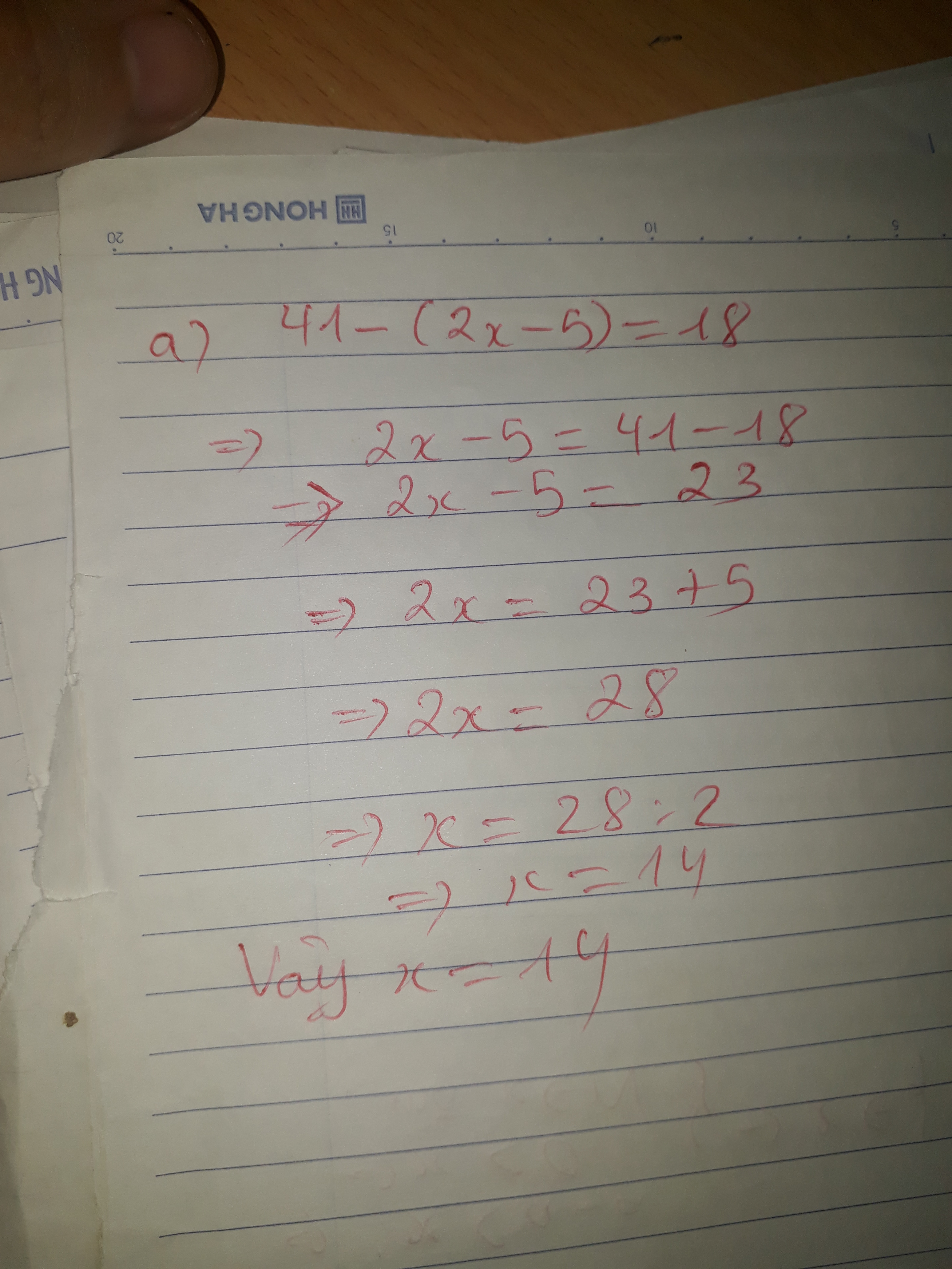 a) 41-(2x-5)=18