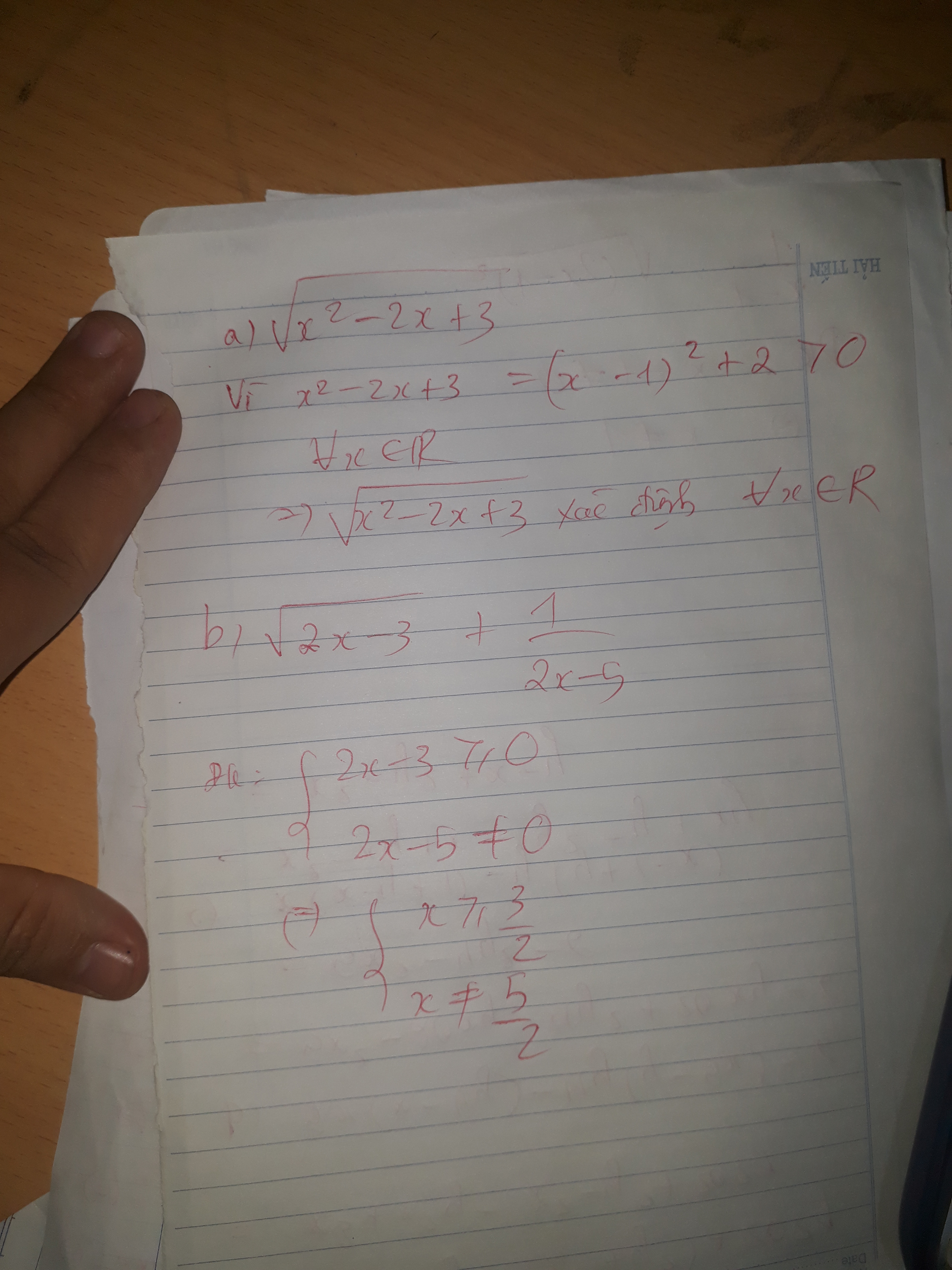 b, x lớn hơn hoặc bằng 3/2 và x khác 5/2