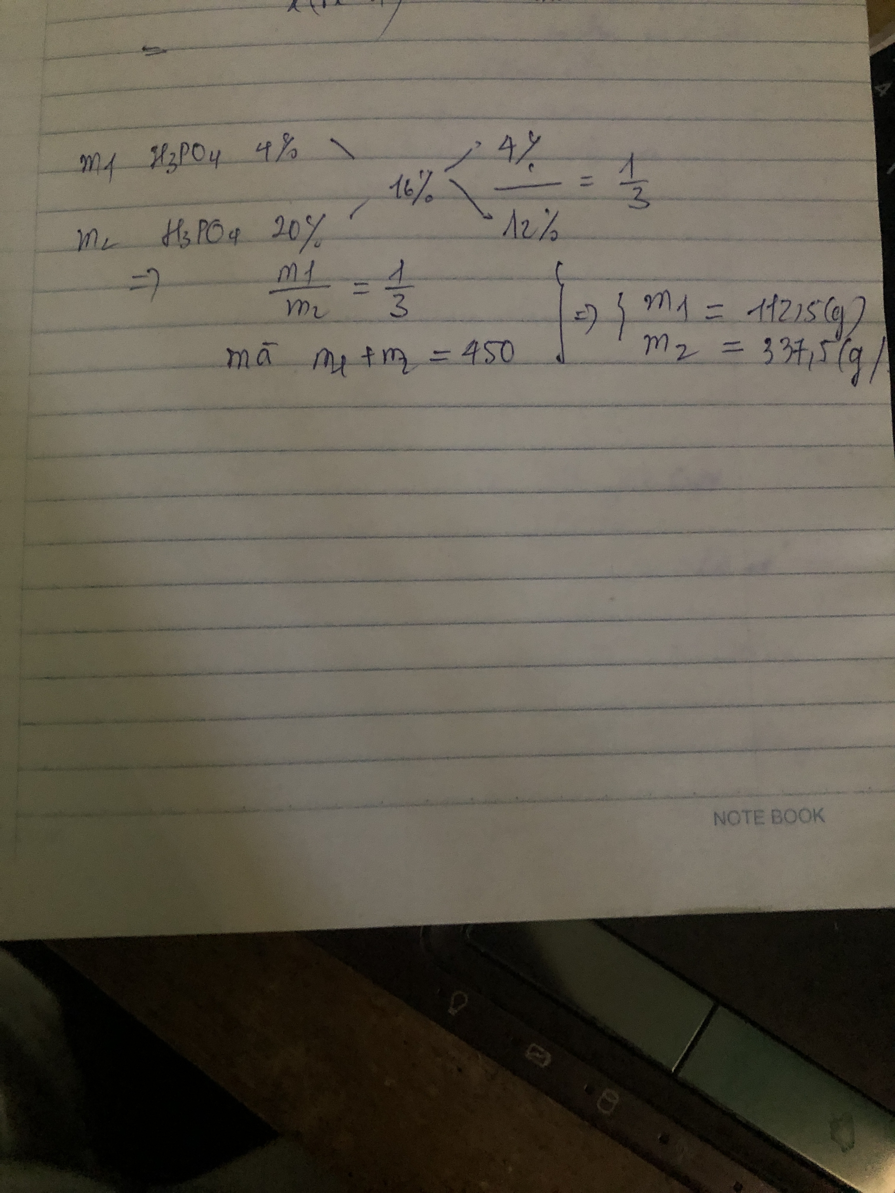 Từ (1) và (2)=>m1=112,5 g và m2=337,5 g