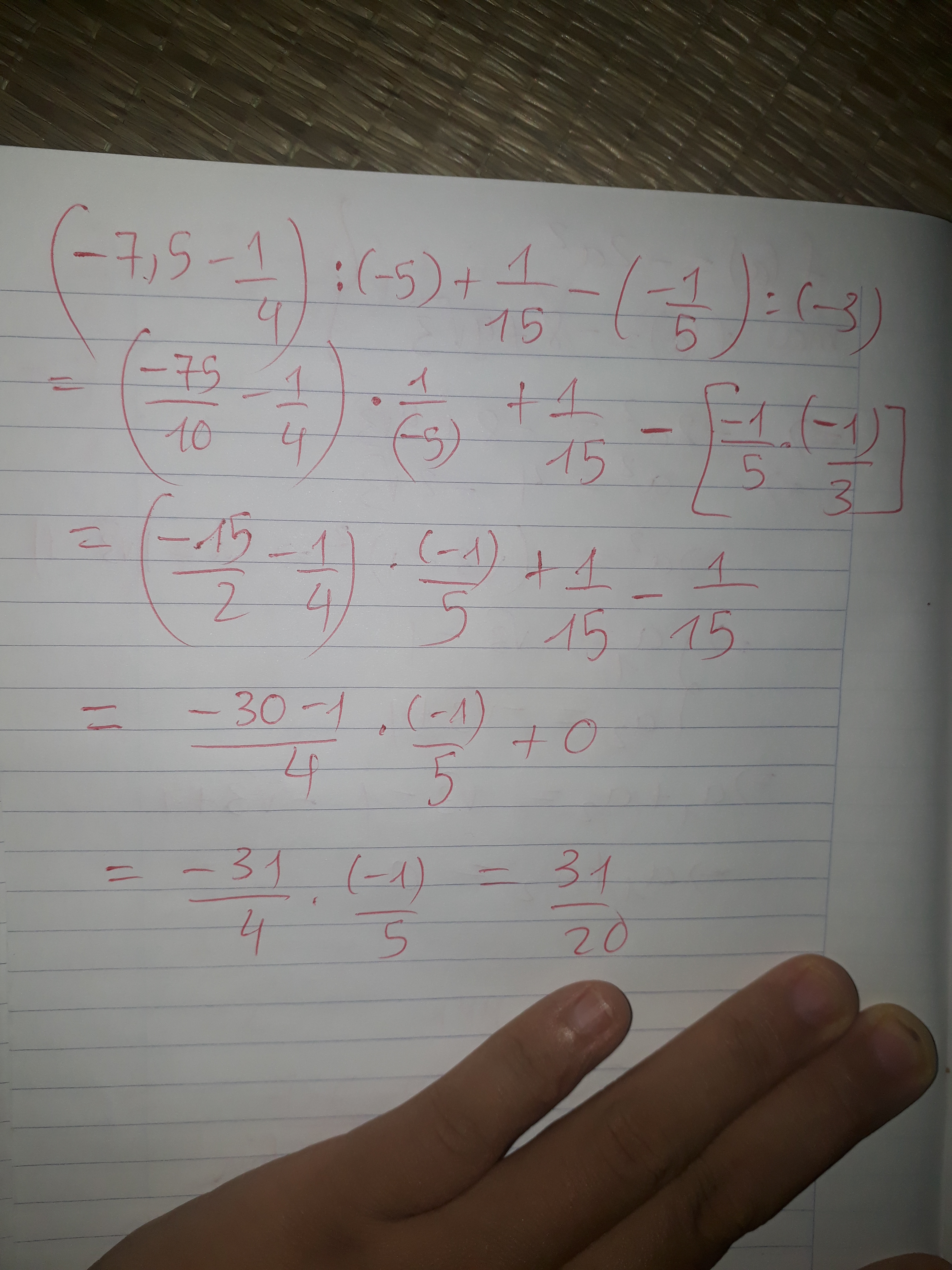 (-7,5-1/4):(-5)+1/15-(-1/5):(-3)