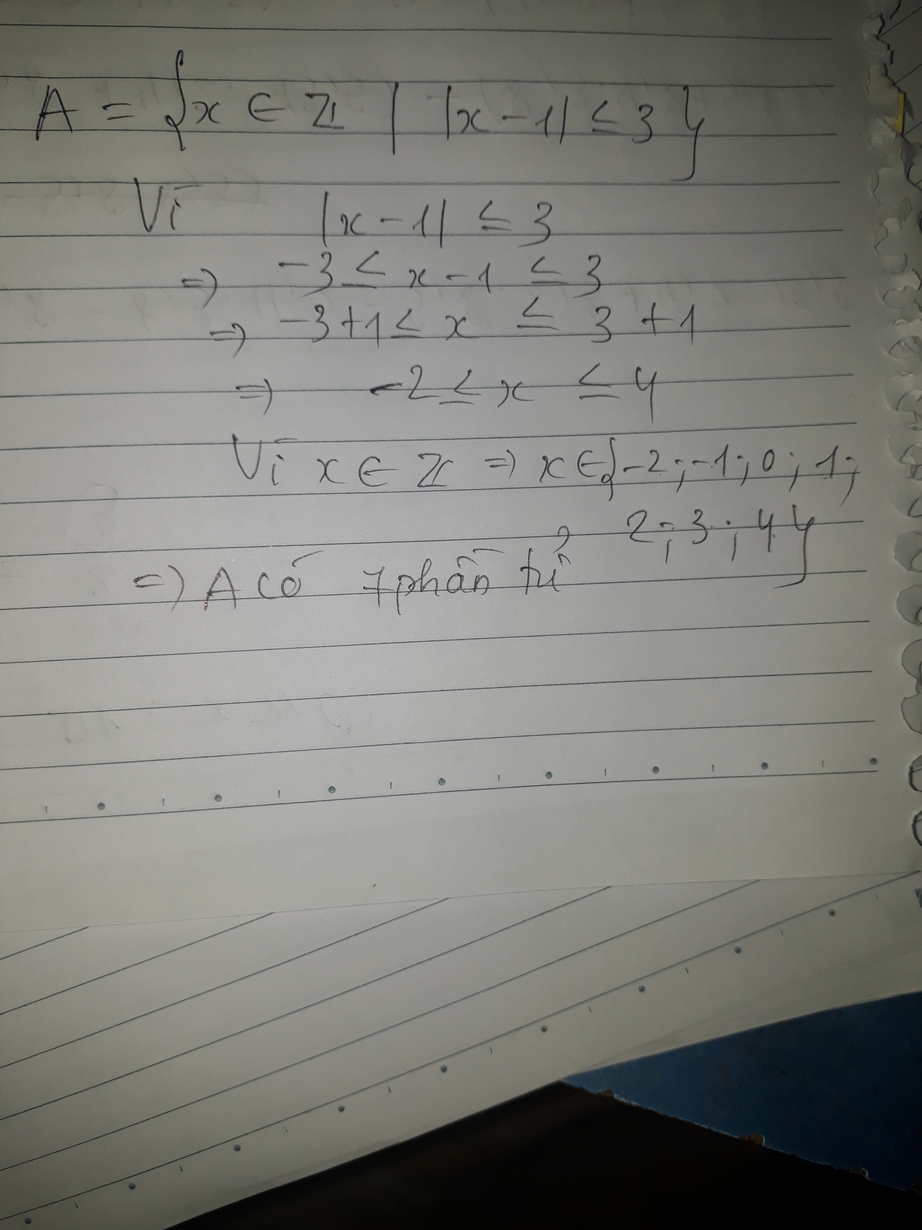 A={x thuộc Z/|x-1| ≤ 3}. số phần tử của A