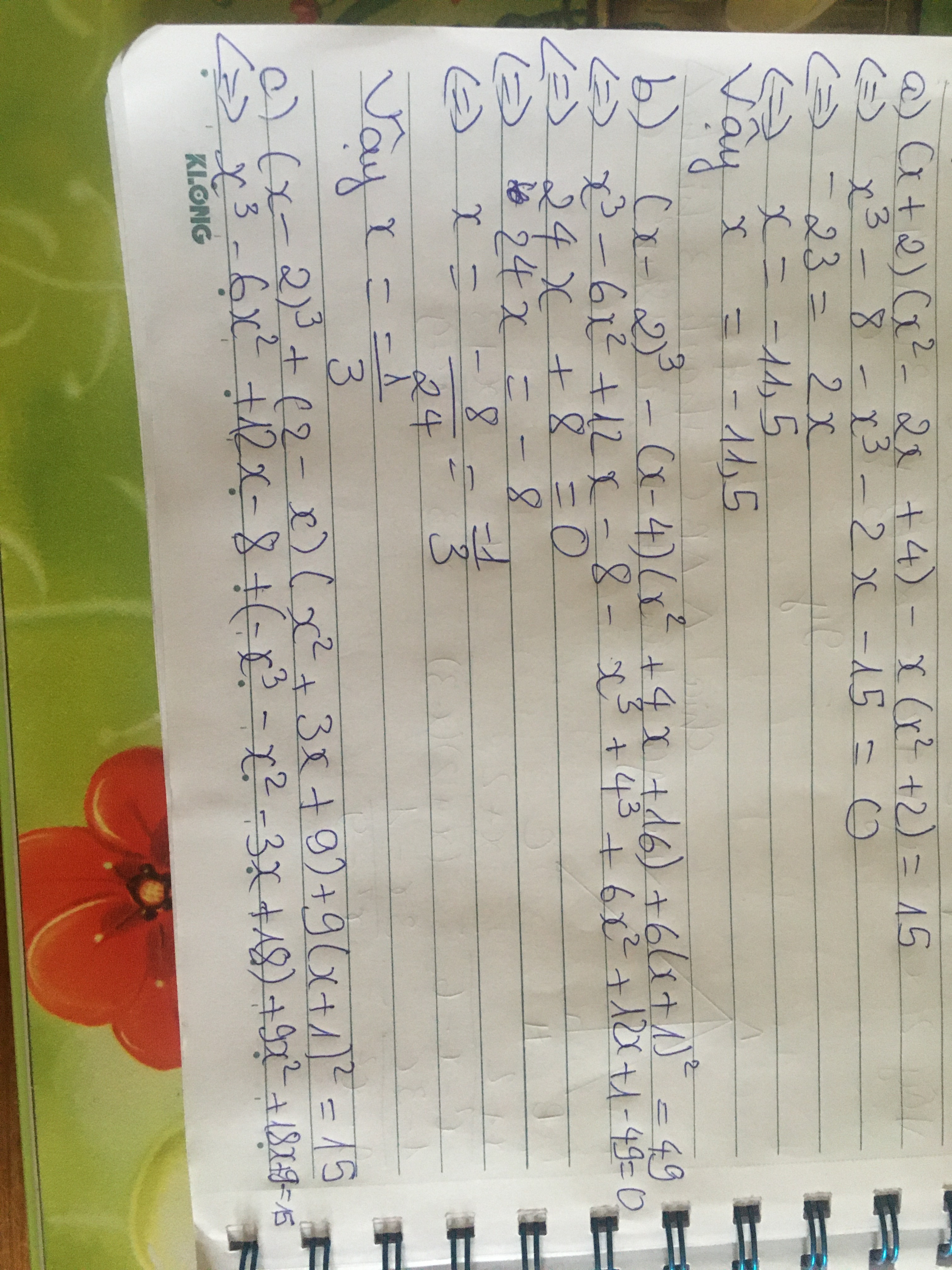 b) (x-2)³-(x-4)(x²+4x+16)+6(x+1)²=49