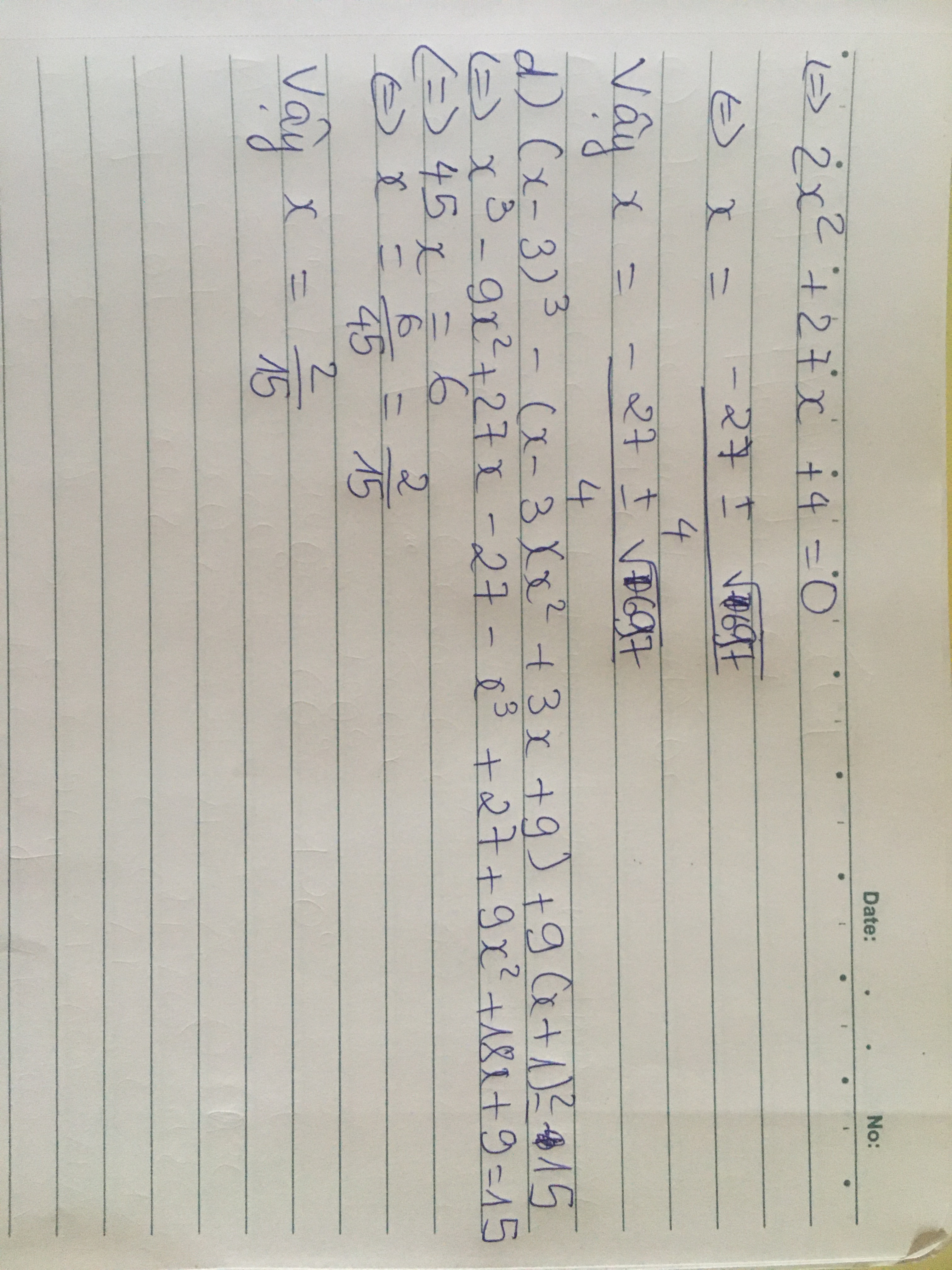 d) (x-3)³-(x-3)(x²+3x+9)+9(x+1)²=15
