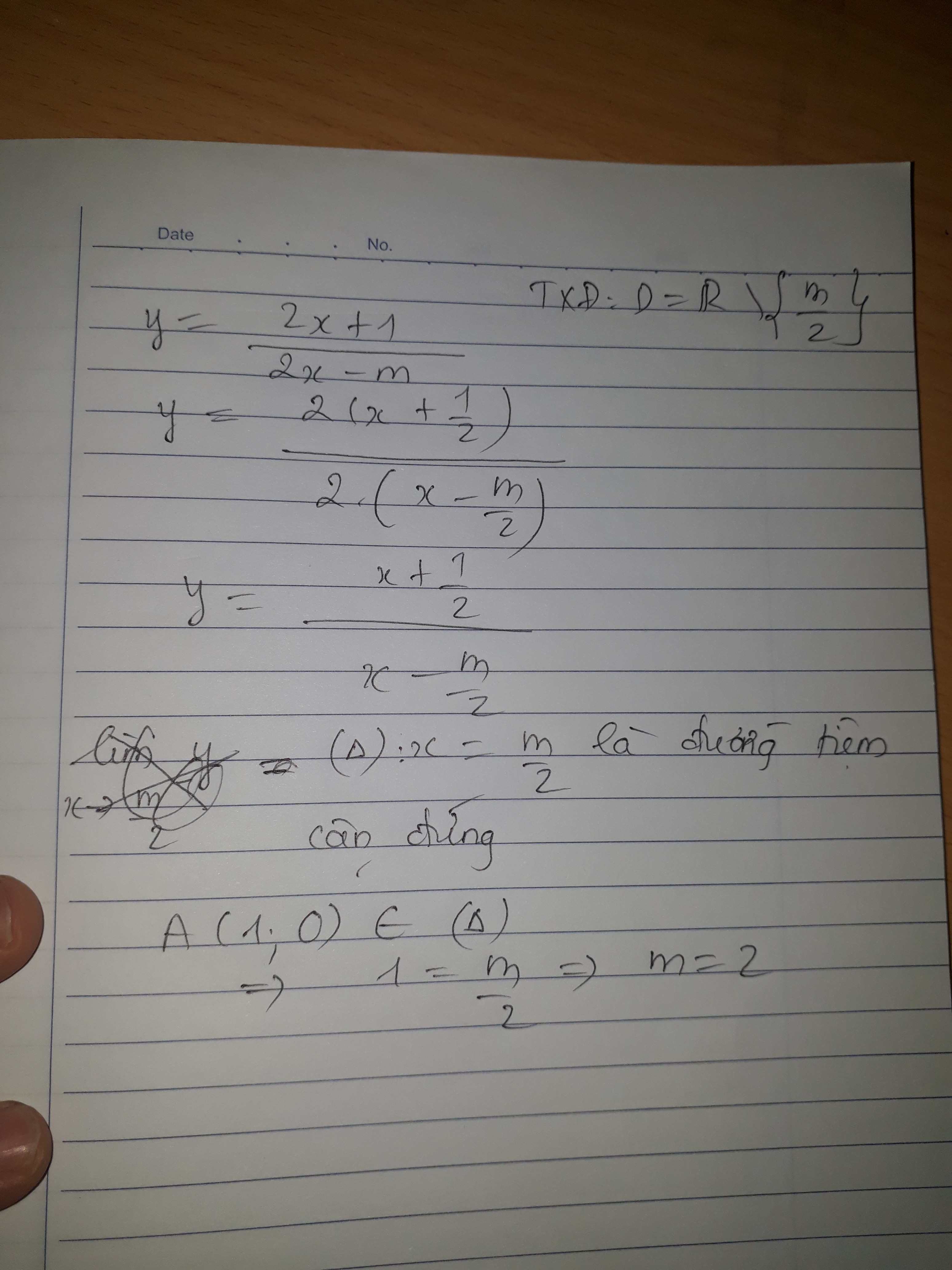 Đường tiệm cận đứng của đồ thị hàm số là x=m/2
