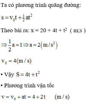 Một vật chuyển động thẳng biến đổi đều với phương trình chuyển động là: x = 20 + 4t + t2 ( m;s )