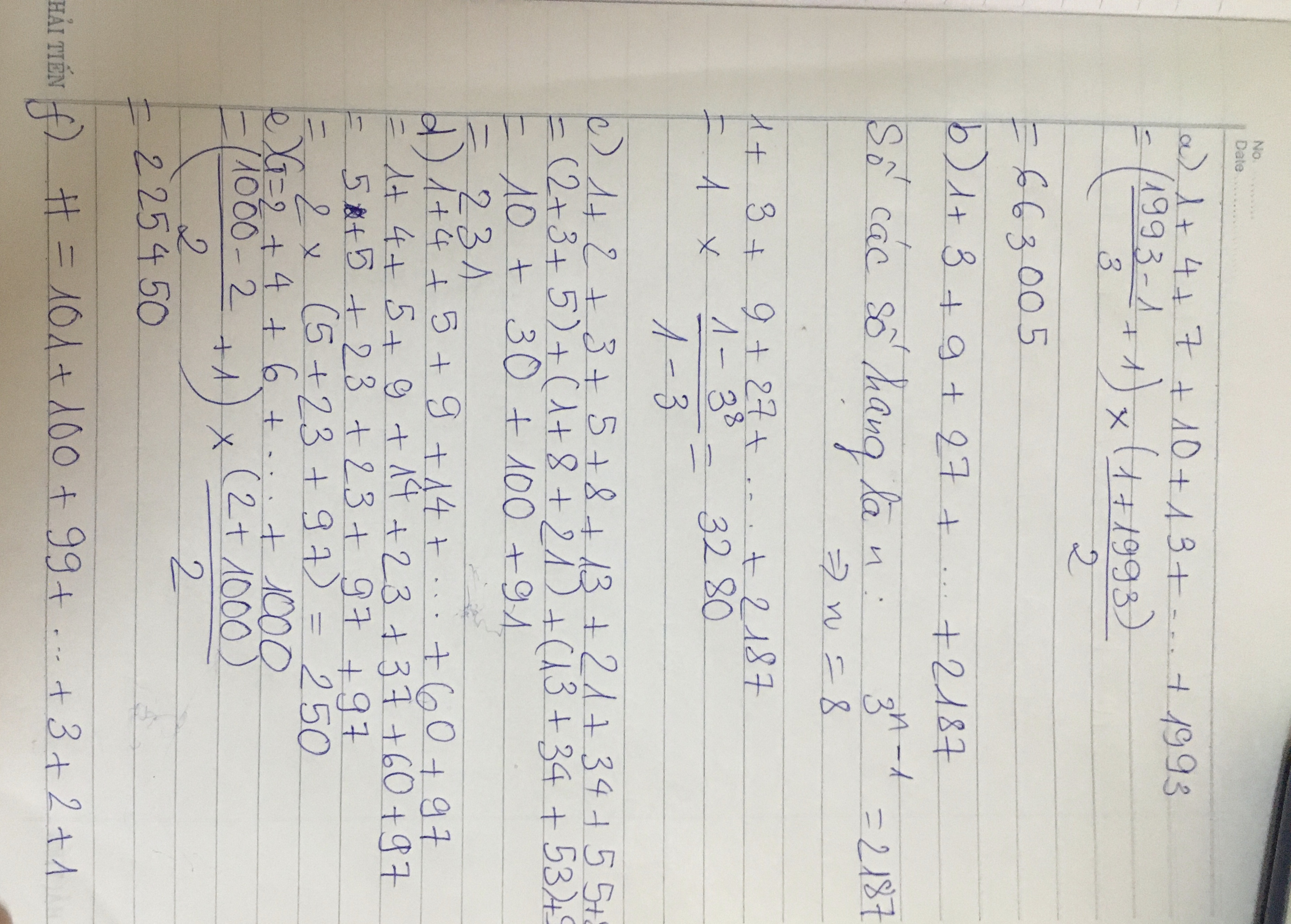 a) 1 + 4 + 7 + 10 + 13 + ….+ 1993