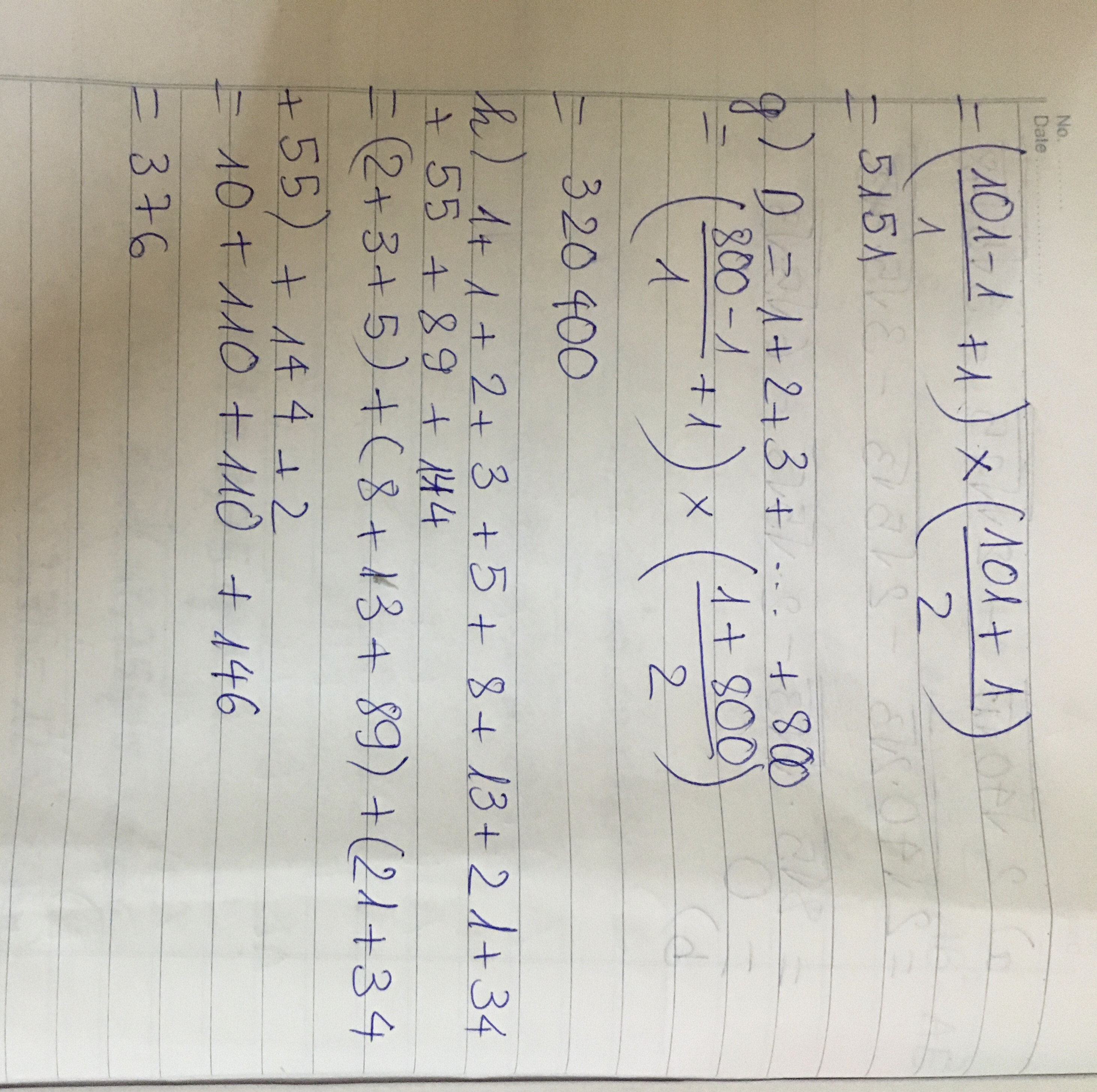 c) 1+ 2+3 +5 +8 +13+21 + 34 + 55 + 89