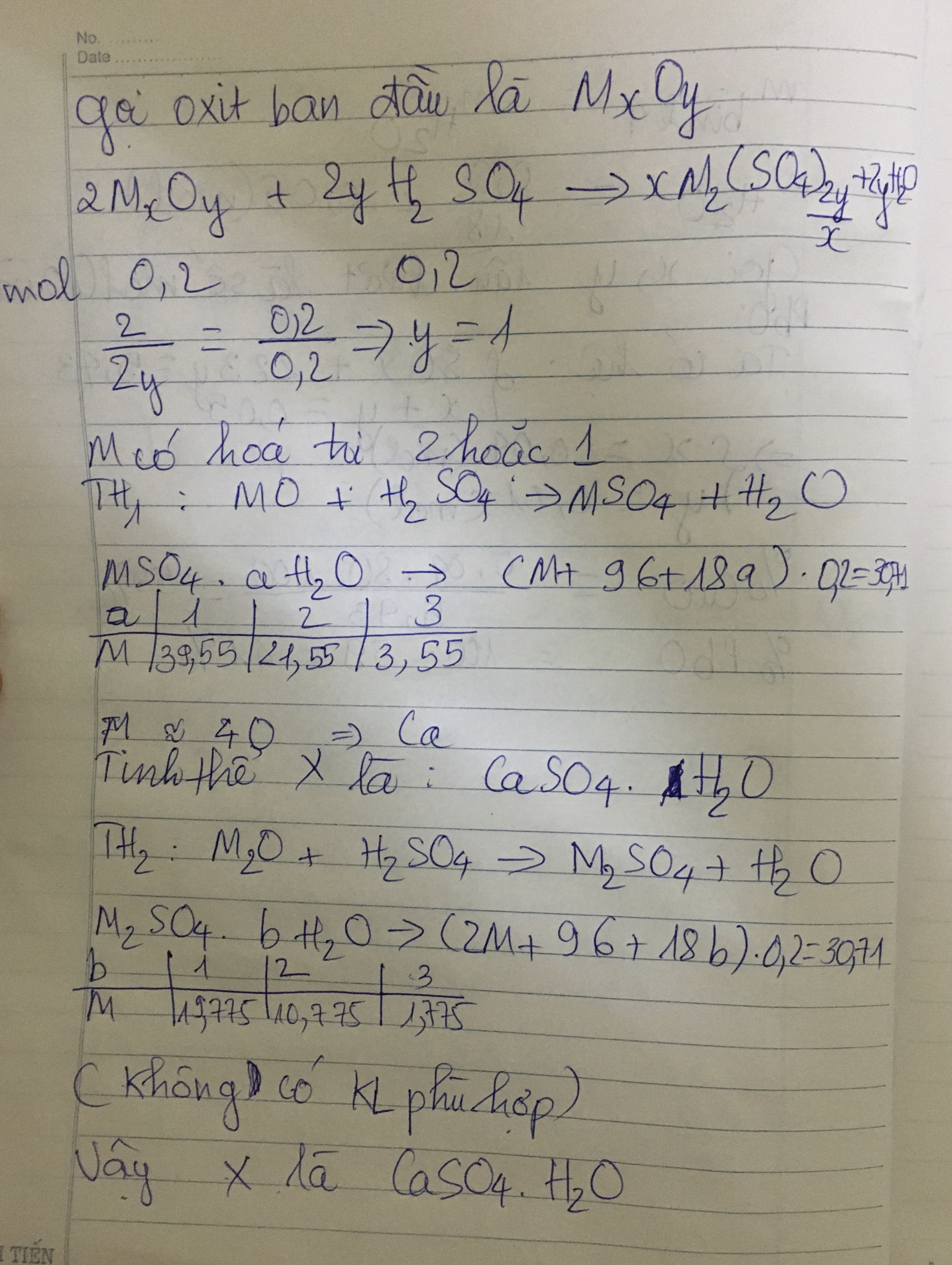 Cho 0,2 mol 1 oxit kim loại phản ứng vừa đủ với 98 gam dd h2so4 20%.sau đó làm lạnh thu được 30,71 gam tinh thể X.tìm CTHH của X