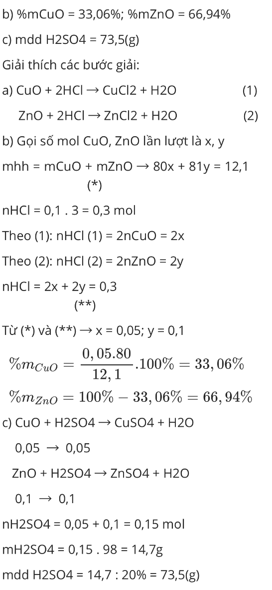 a) Gọi số mol CuO, ZnO lần lượt là x, y