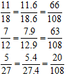 Thừa số phụ: 108 : 18 = 6; 108 : 12 = 9; 108 : 27 = 4