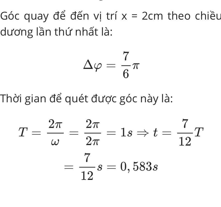 Một chất điểm dao động điều hoà với phương trình x = 4cos(2πt + π/2) cm. Thời gian từ lúc bắt đầu dao động đến lúc đi qua vị trí x = 2 cm theo chiều dương của trục toạ độ lần thứ 1 là: