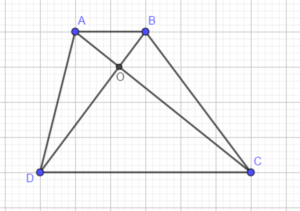 ABCD là hình thang có AB//CD. Hai đường chéo AC và BD cắt nhau tại O nên ta có: