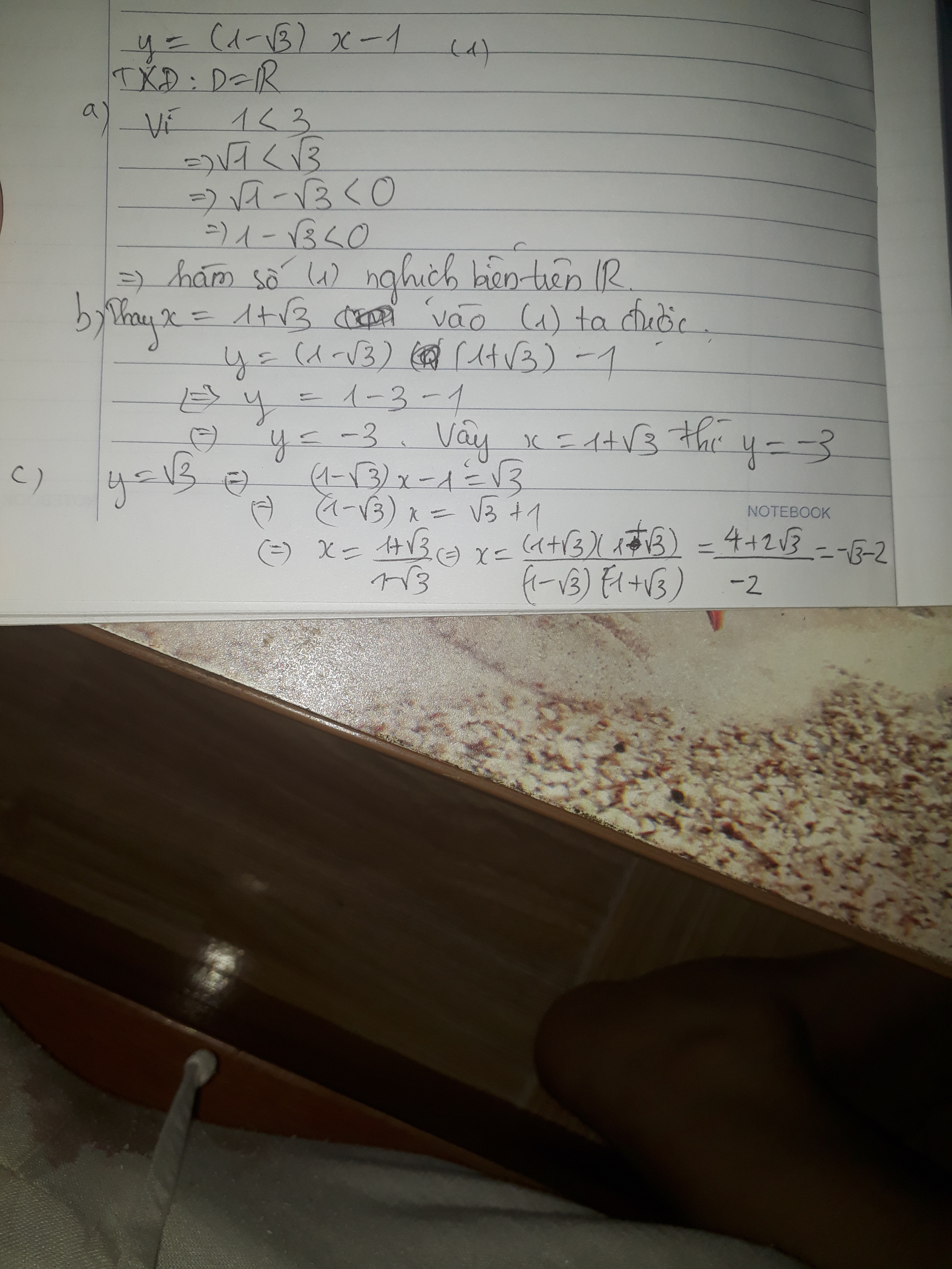a) hàm số đồng biến hay nghịch biến trên R ? vì sao ?
