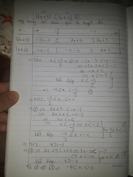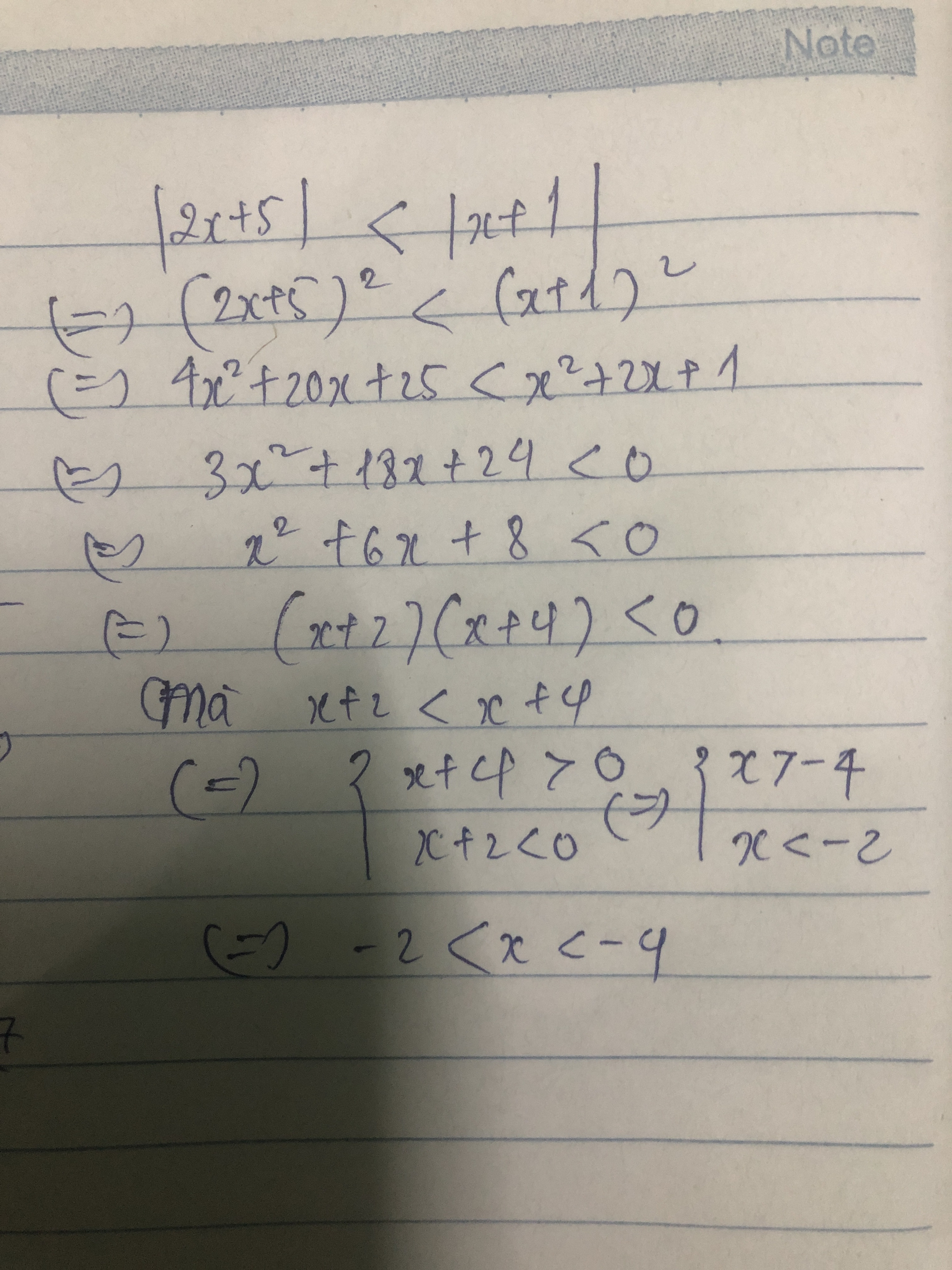 Giá trị tuyệt đối của 2 x + 5 nhỏ hơn sơn giá trị tuyệt đối của x + 1