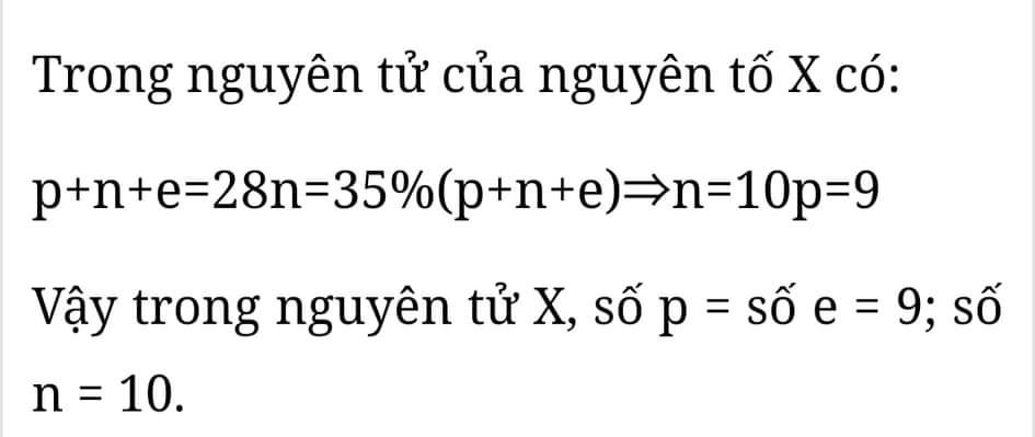 Nếu tổng số Proton nơtron electron trong nguyên tử là 28 và số hạt không mang điện chỉ sấp xỉ 35% thì số electron của nguyên tử là