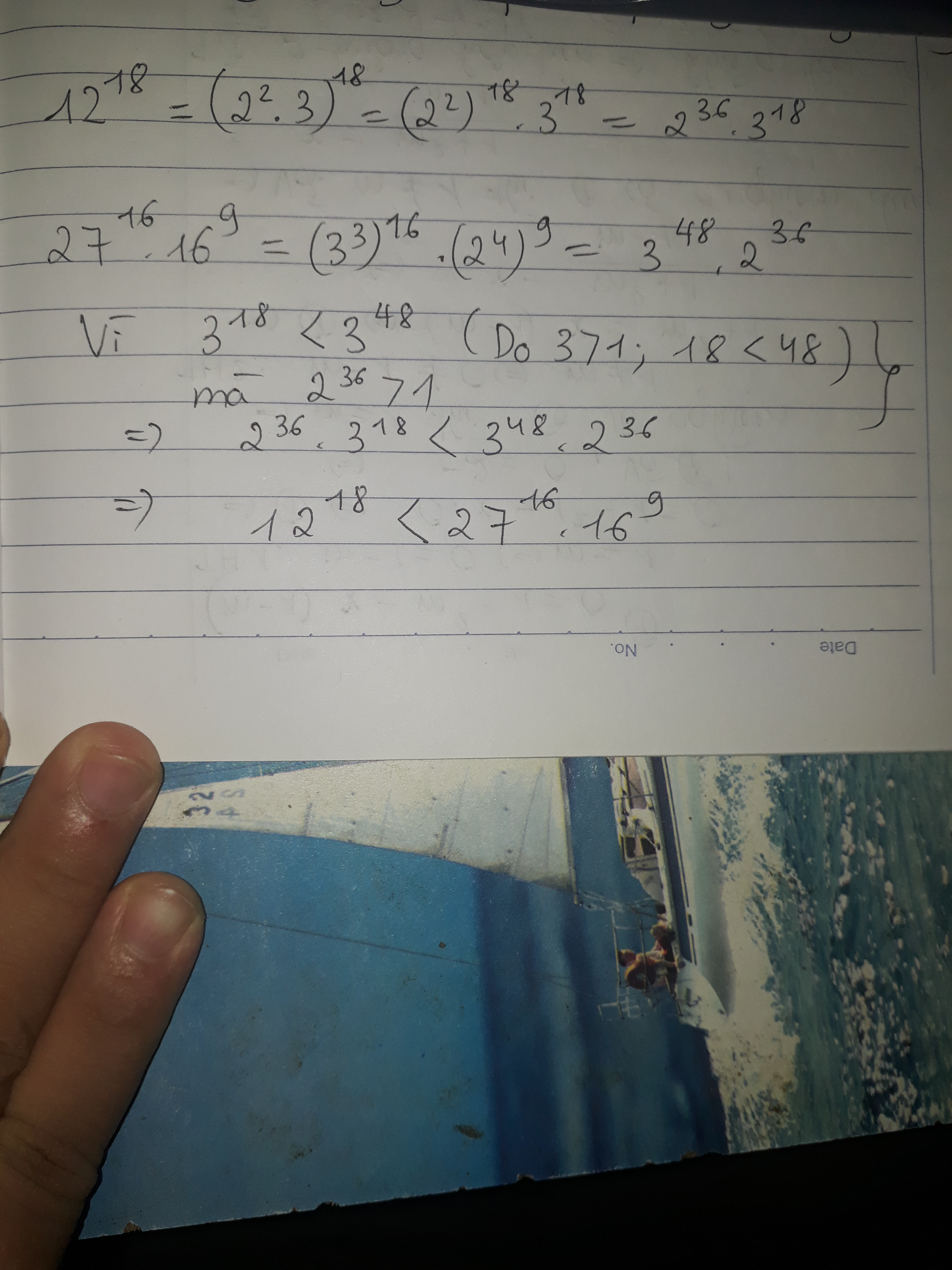 Do 3^48>3^18 nên 12^18 < 27^16.16^9
