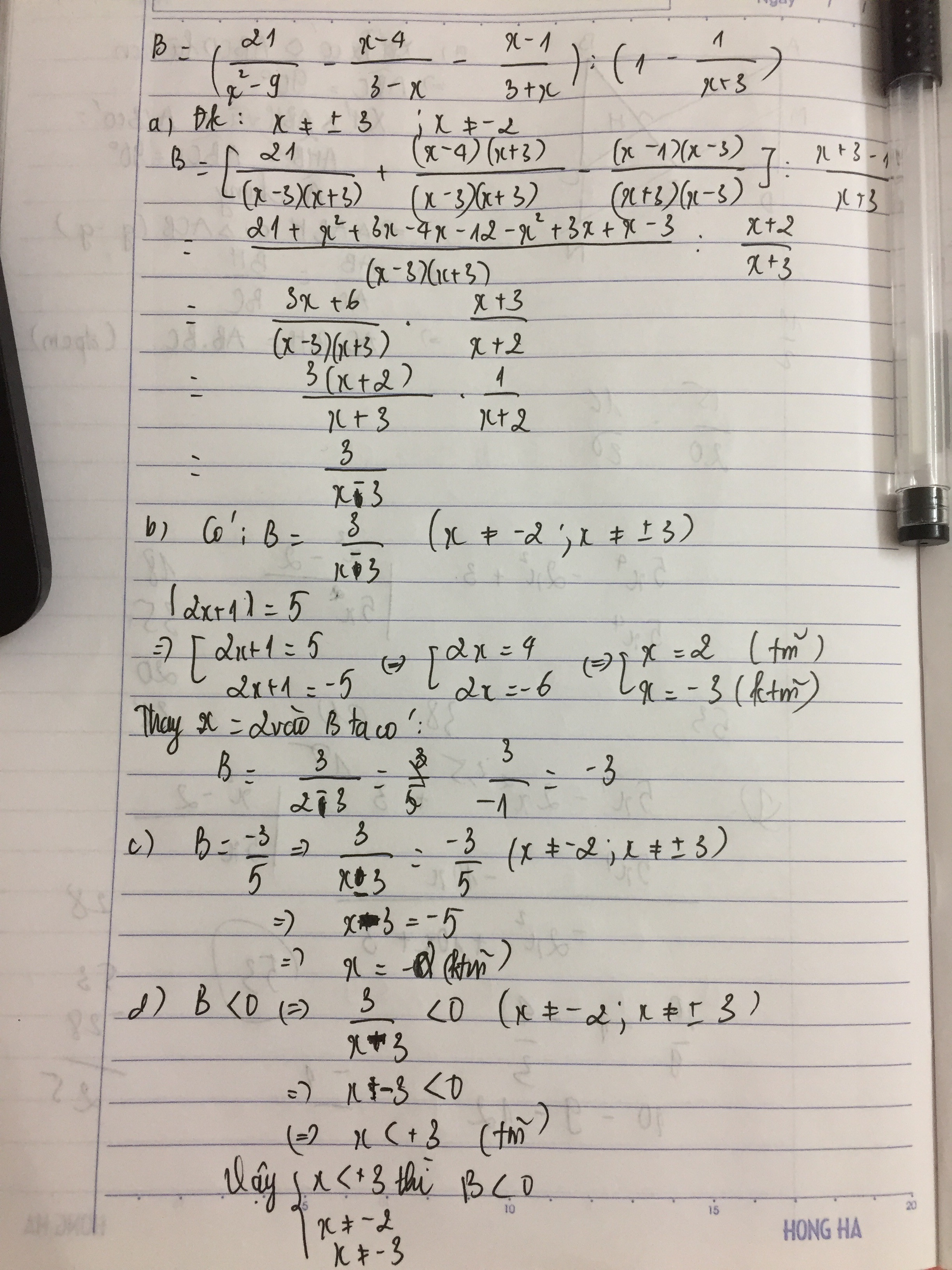 b) Tính giá trị biểu thức B tại x thỏa mãn : |2x+1|=5