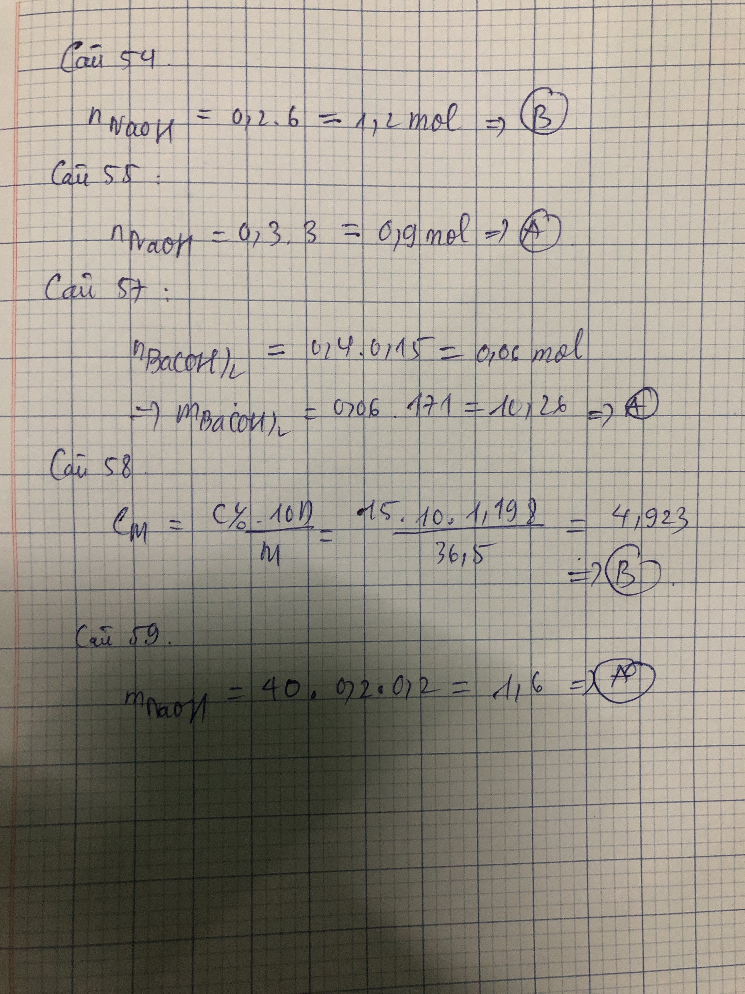 Câu 54: Số mol trong 200 ml NaOH 6M là