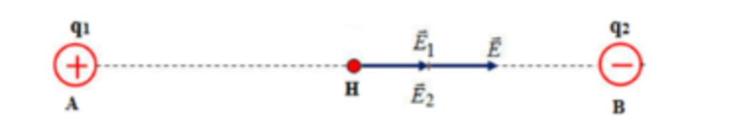 Cho 2 điện tích q1= +4.10^-10C q2=-4.10^-10 đặt ở 2 điểm AB trong không khí .AB bằng 2cm xác định cường độ điện trường do q1 q2 gây ra tại .
