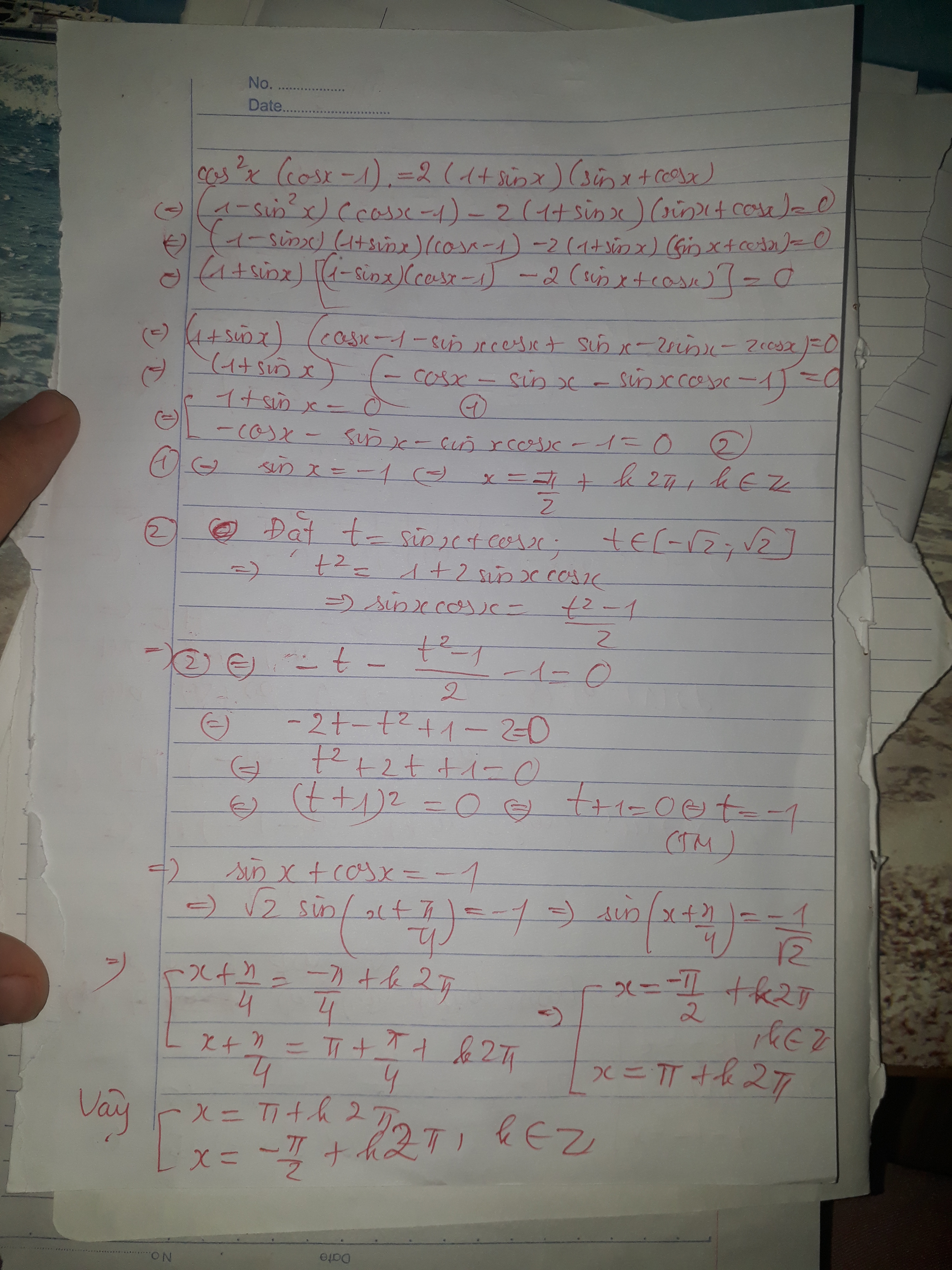 Cos^2x(cosx-1) = 2(1+sinx)(sinx+cosx)
