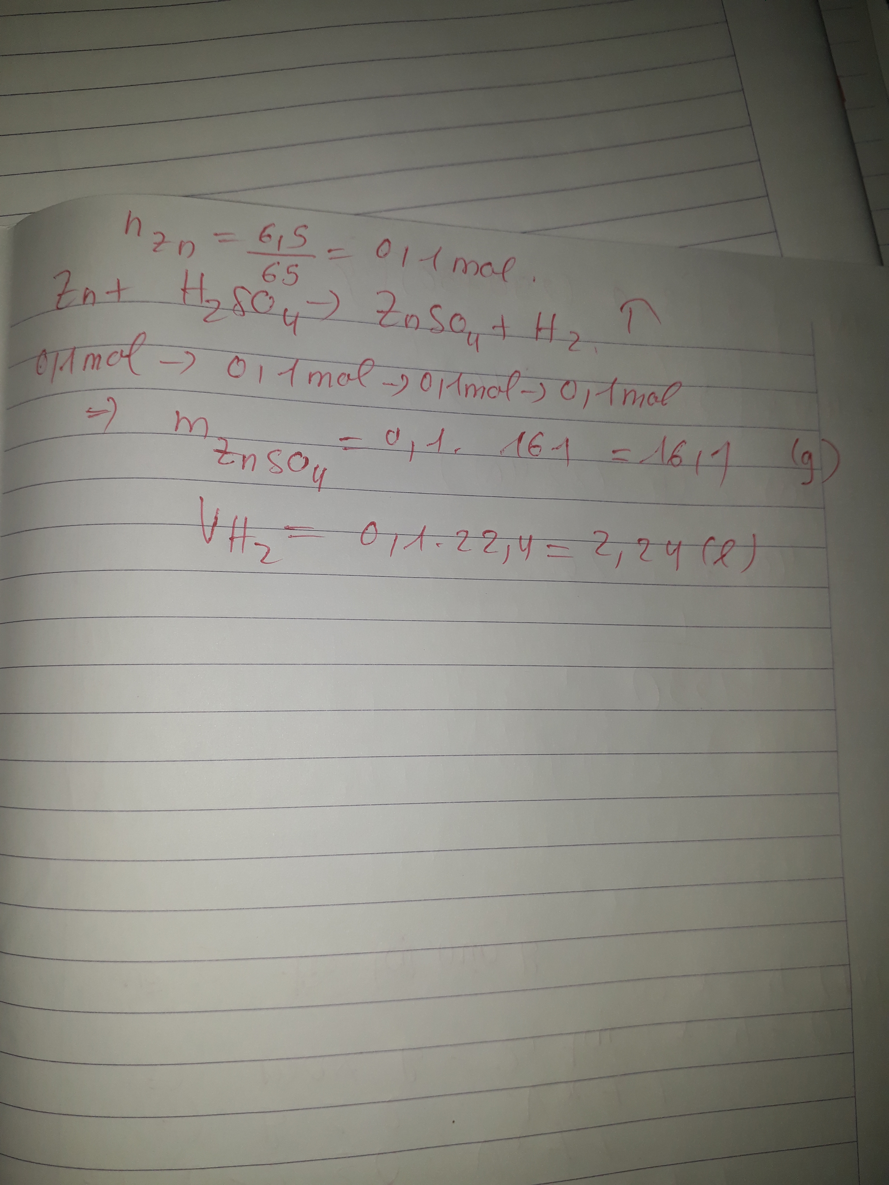 Cho 6,5 g Zn vào 200 ml dung dịch H2SO4