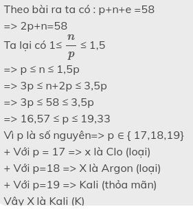 Tổng số hạt p, e, n trong một loại nguyên tử nguyên tố kim loại X là 58. Tìm nguyên tố X.