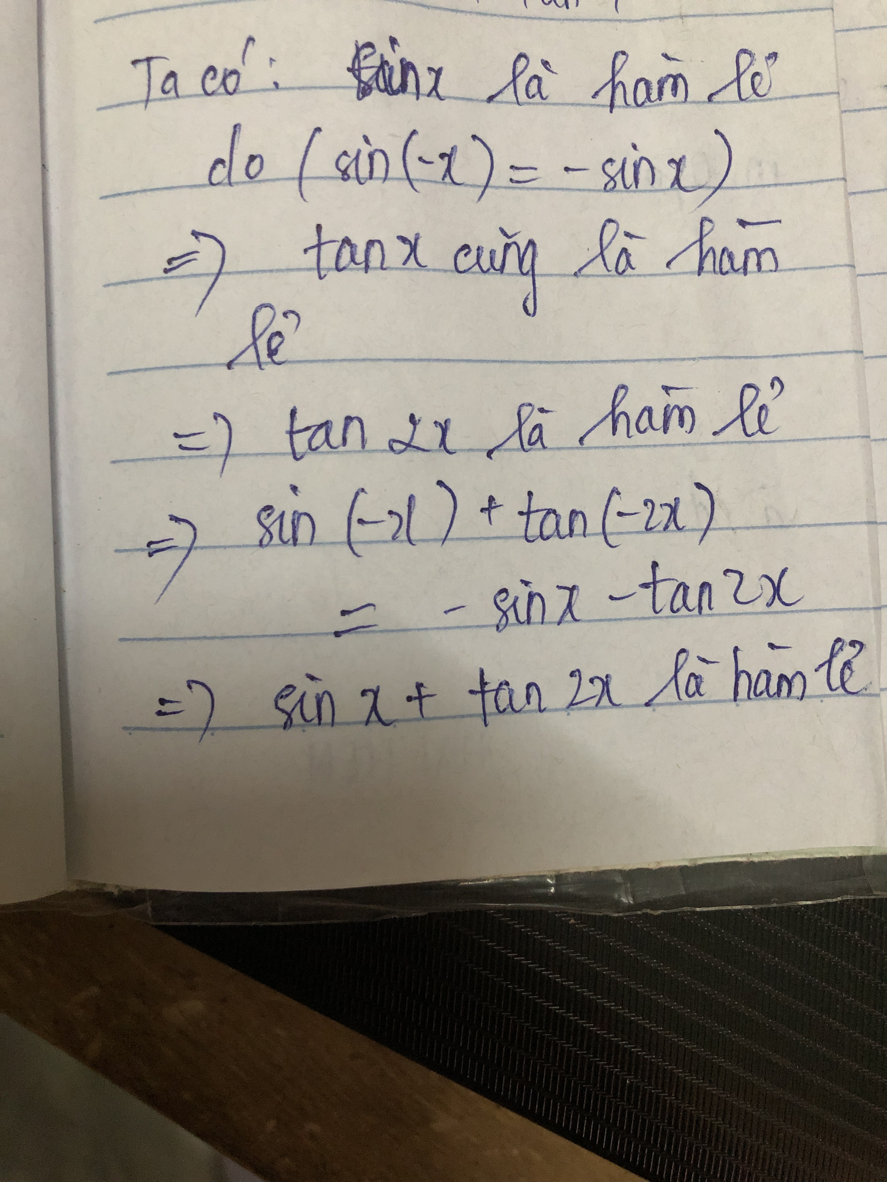 giúp em với ạ , em đang cần gấp , xét tính chẵn lẻ của hàm số y = sin x + tan2x . Em cảm ơn rất nhiều ạ !