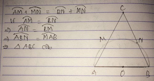 N sao cho AM=BN. Gọi C là giao điểm của AN với BM. Chứng minh tam giác ABC cân