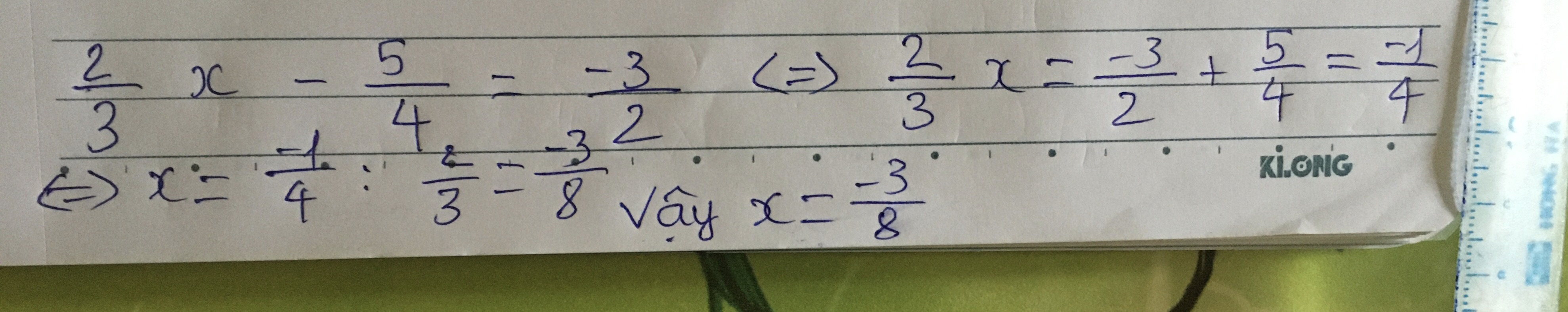 Toán hai phần ba x trừ năm phần tư bằng âm bà phần hai tính dùm mik nha