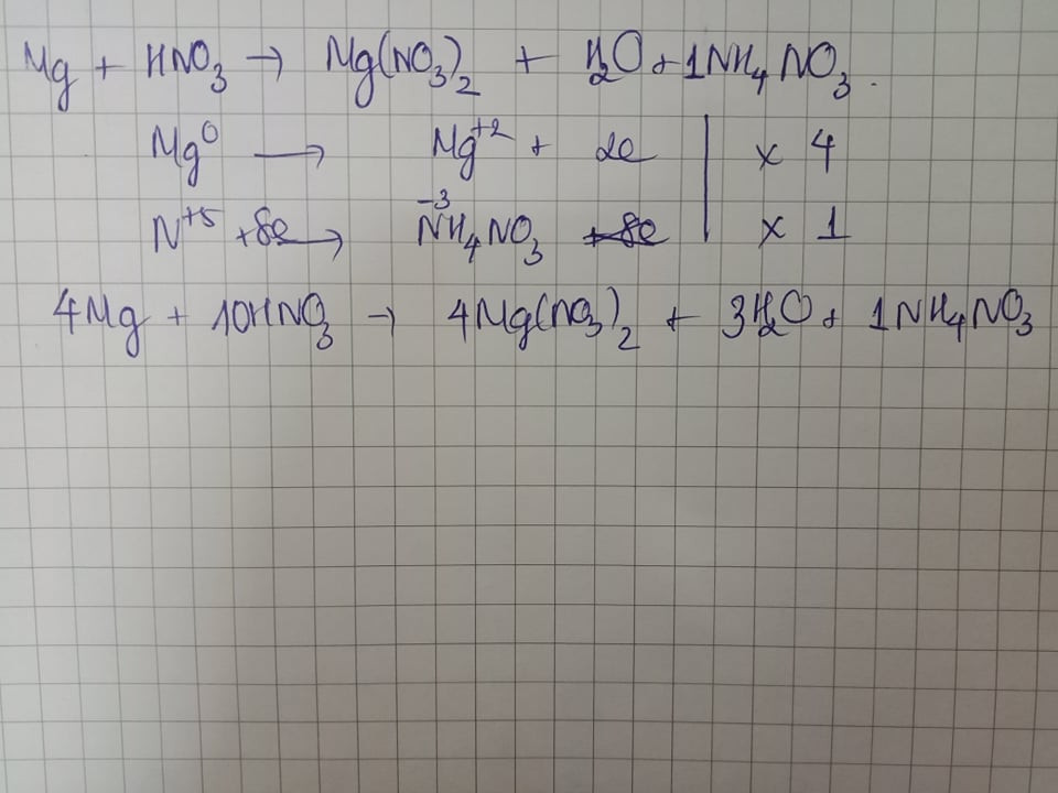 Cho phản ứng: Mg + HNO3 → Mg(NO3)2 + H2O + NH4NO3. Hệ số của H2O trong phản ứng là: