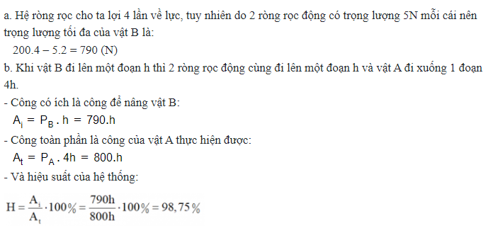 a. Hỏi với hệ thống trên có thể nâng vật B có trọng lượng tối đa là bao nhiêu?