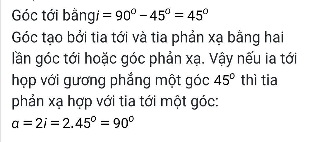 Câu 4: Nếu tia sáng hợp với gương 1 góc 45độ thì góc phản xạ là: