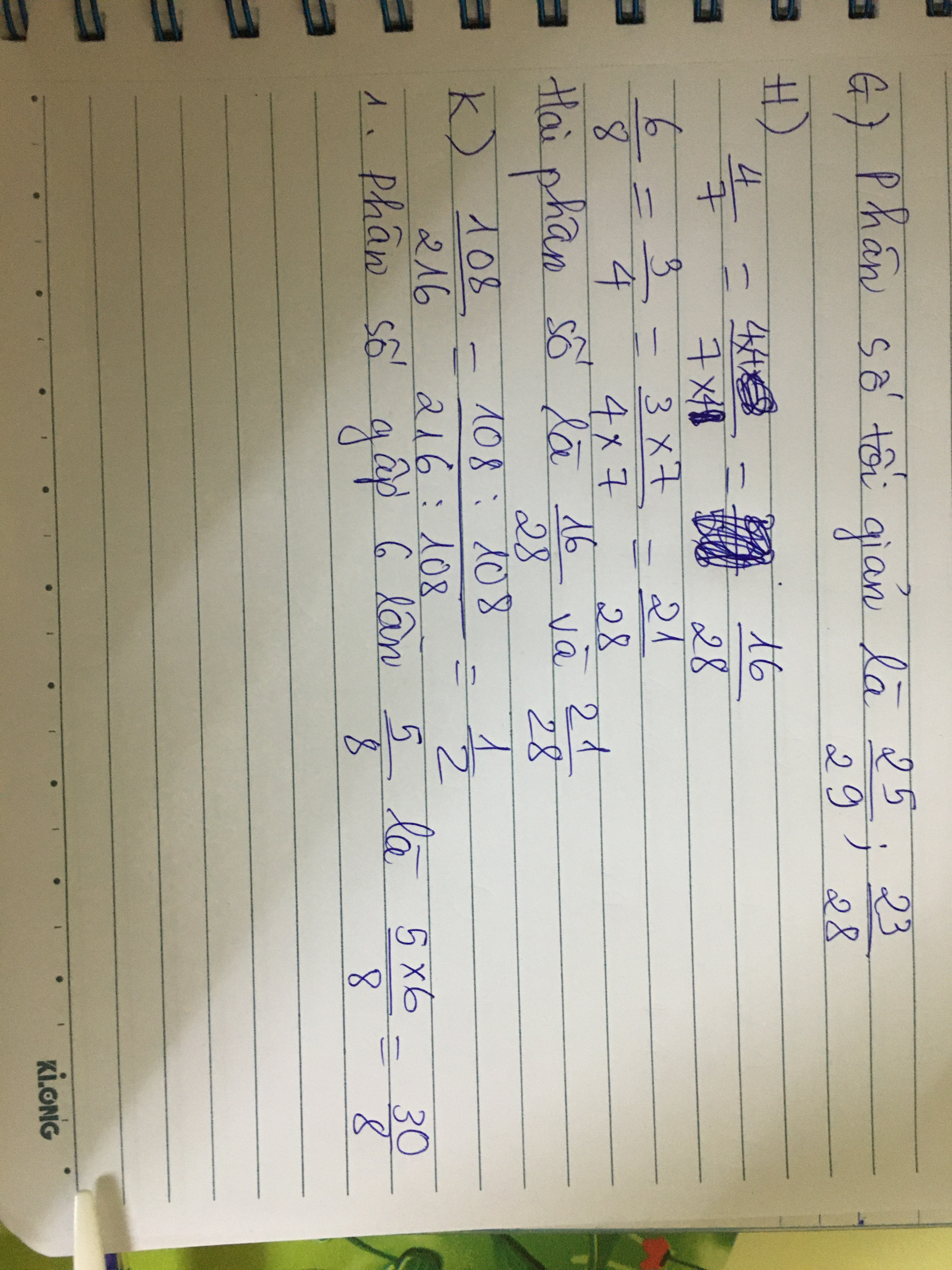 G)Trong các phân số 57/72;25/29;46/54;23/28 phân số tối giản là………………