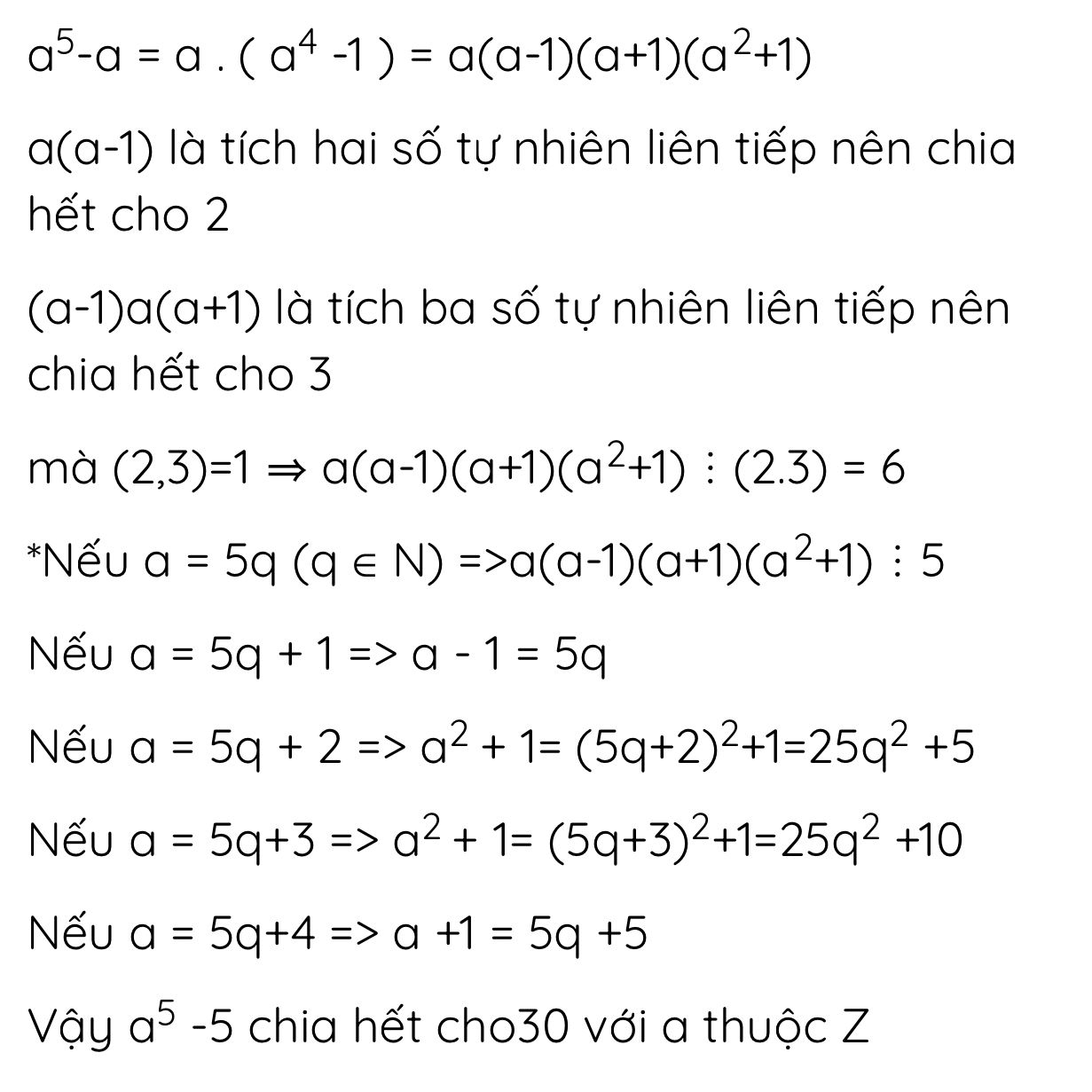 Cho a thuộc Z, cmr: a^5 - a chia hết cho 30