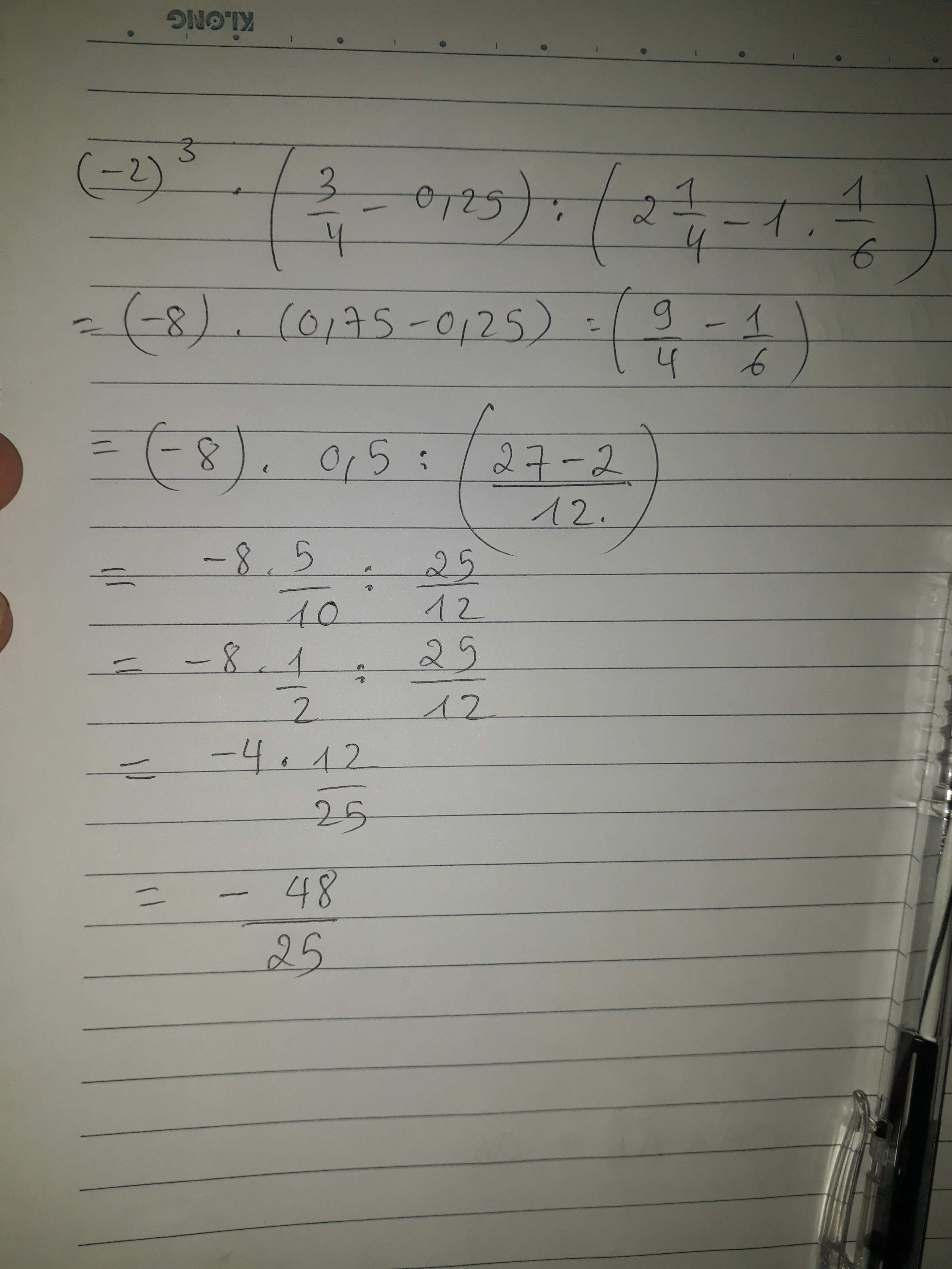 (-2)mũ 3 . (3/4-0,25):(2 1/4- 1. 1/6)