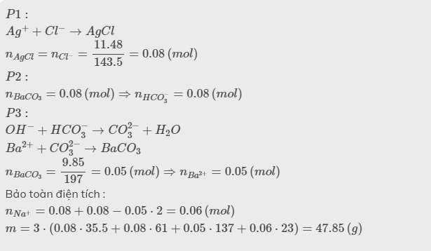 Dd x chưa các ion Ba2+, Na+ HCO3-, Cl-. Chia X thành 3 phần bằng nhau