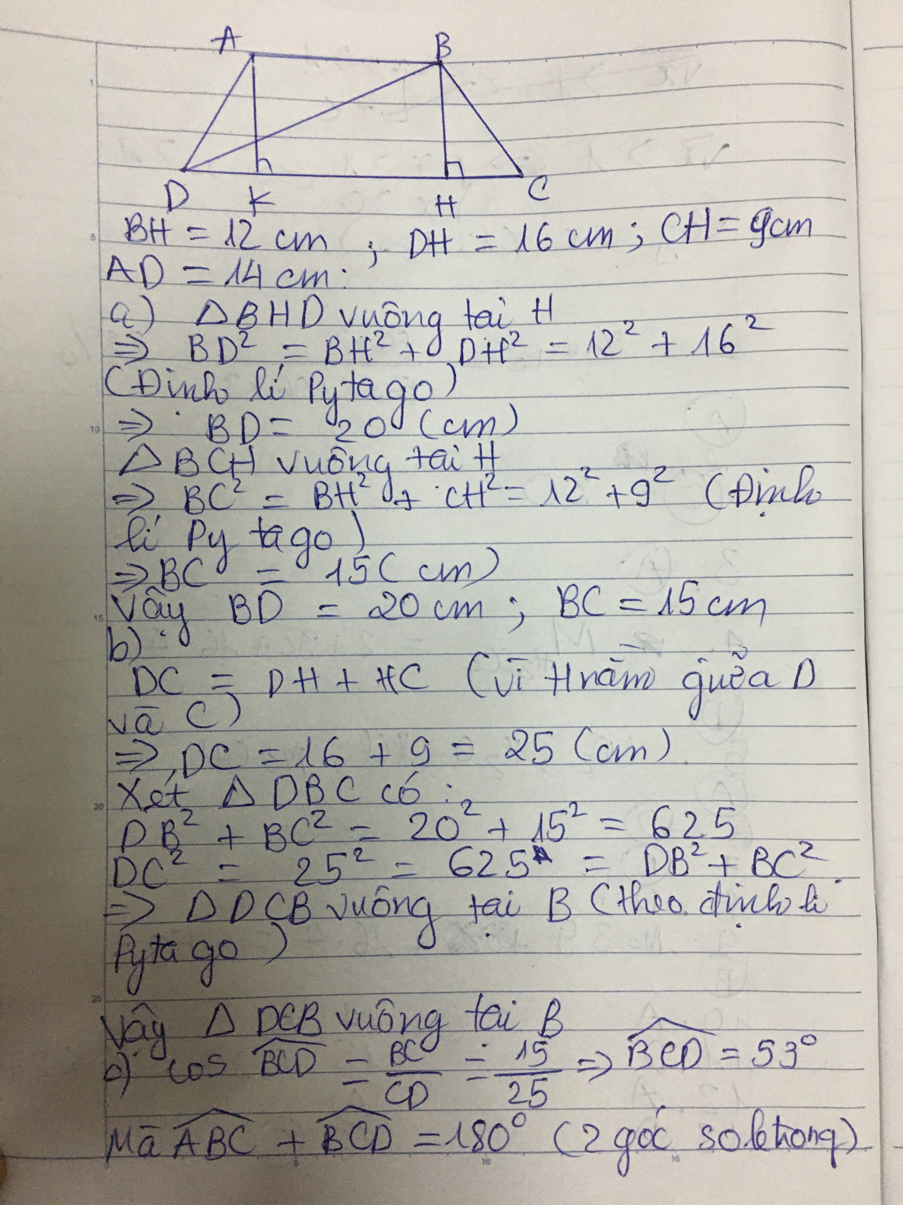 cho biết bh=12cm, dh=16cm, ch=9cm, ad=14cm.