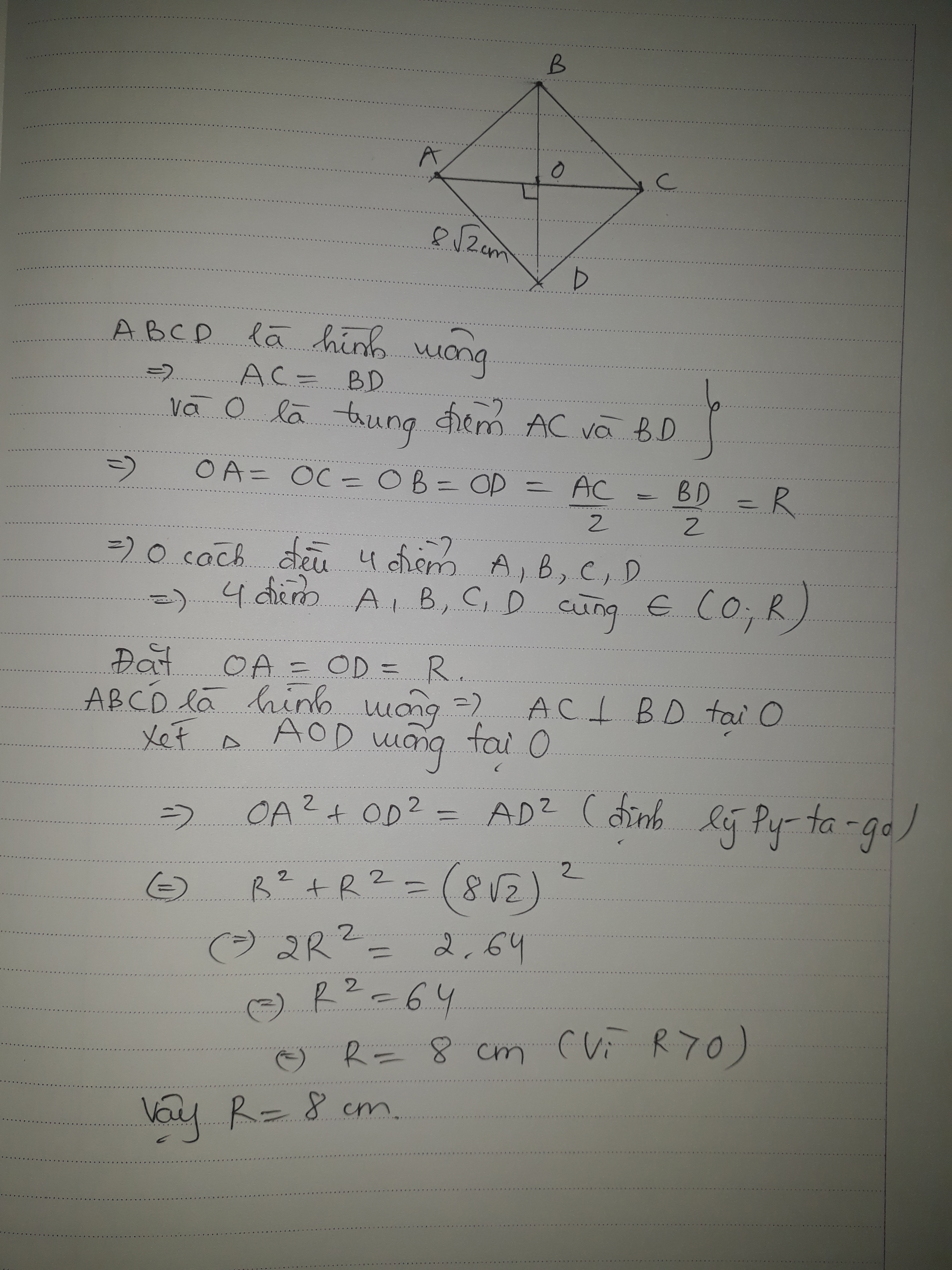 Vậy bốn điểm A, B, C, D cùng nằm trên một đường tròn. Tâm của đường tròn là I.