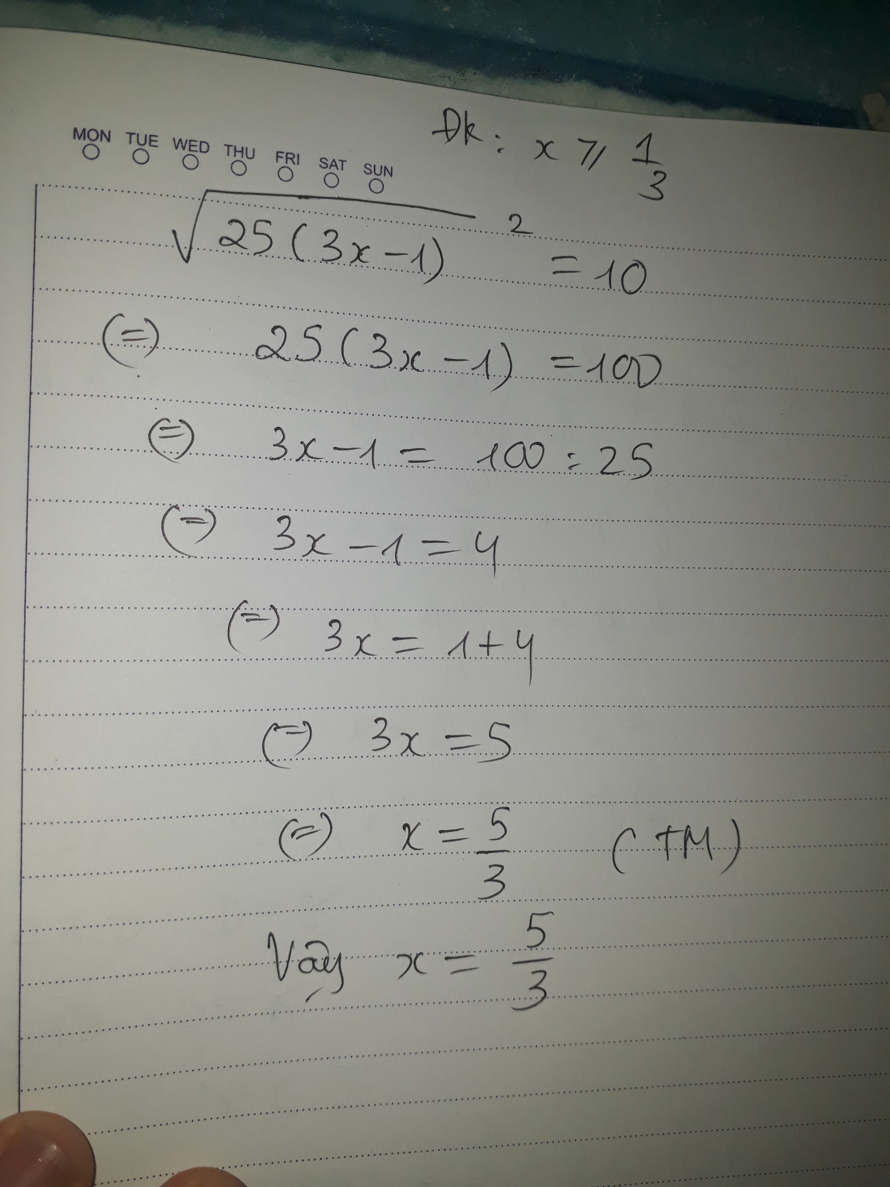\sqrt {25{{(3x - 1)}^2}} = 10\\