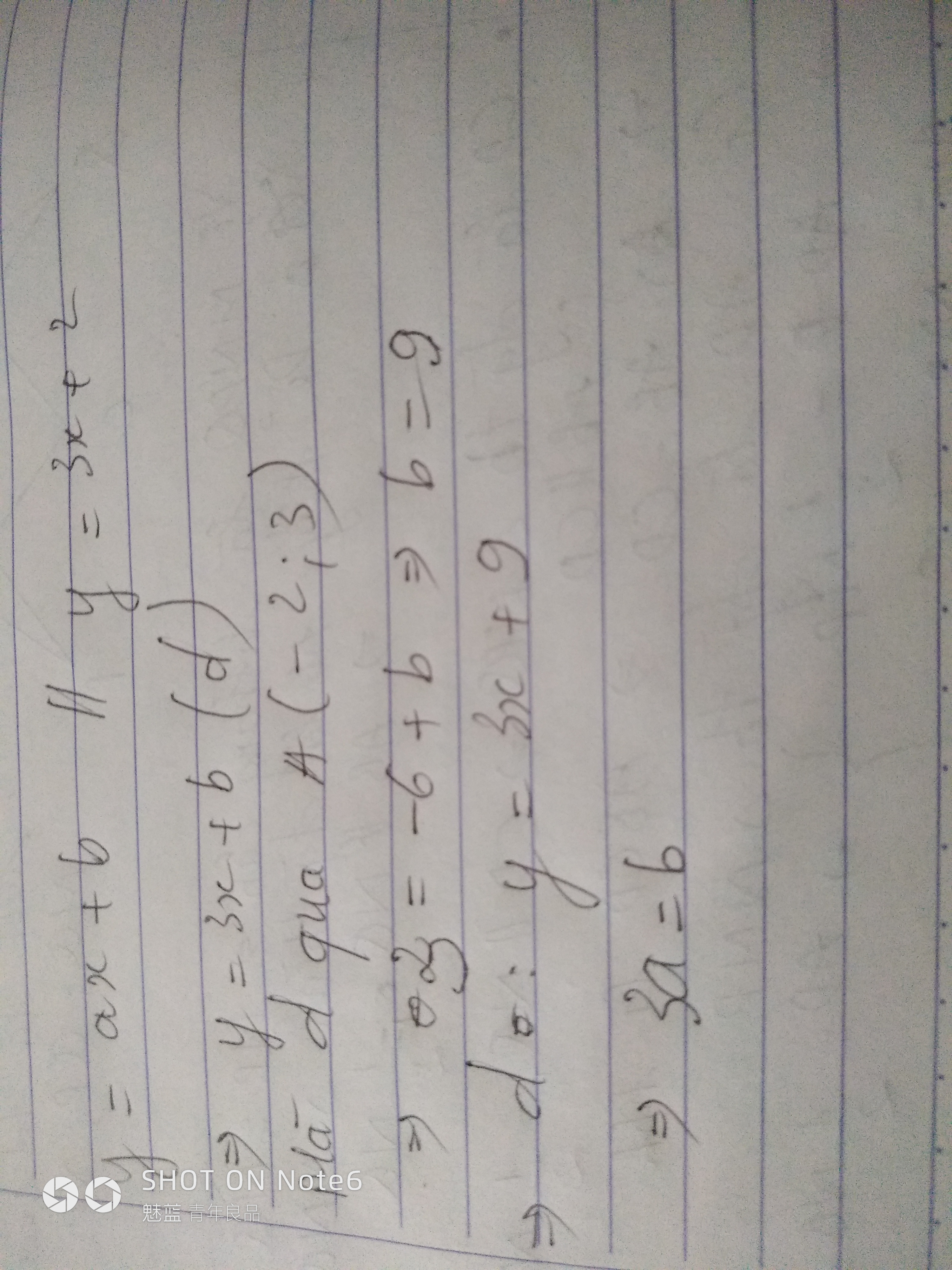 =>y=3x+b (b khác 2) qua A(-2;3) nên thay A vào ta có: