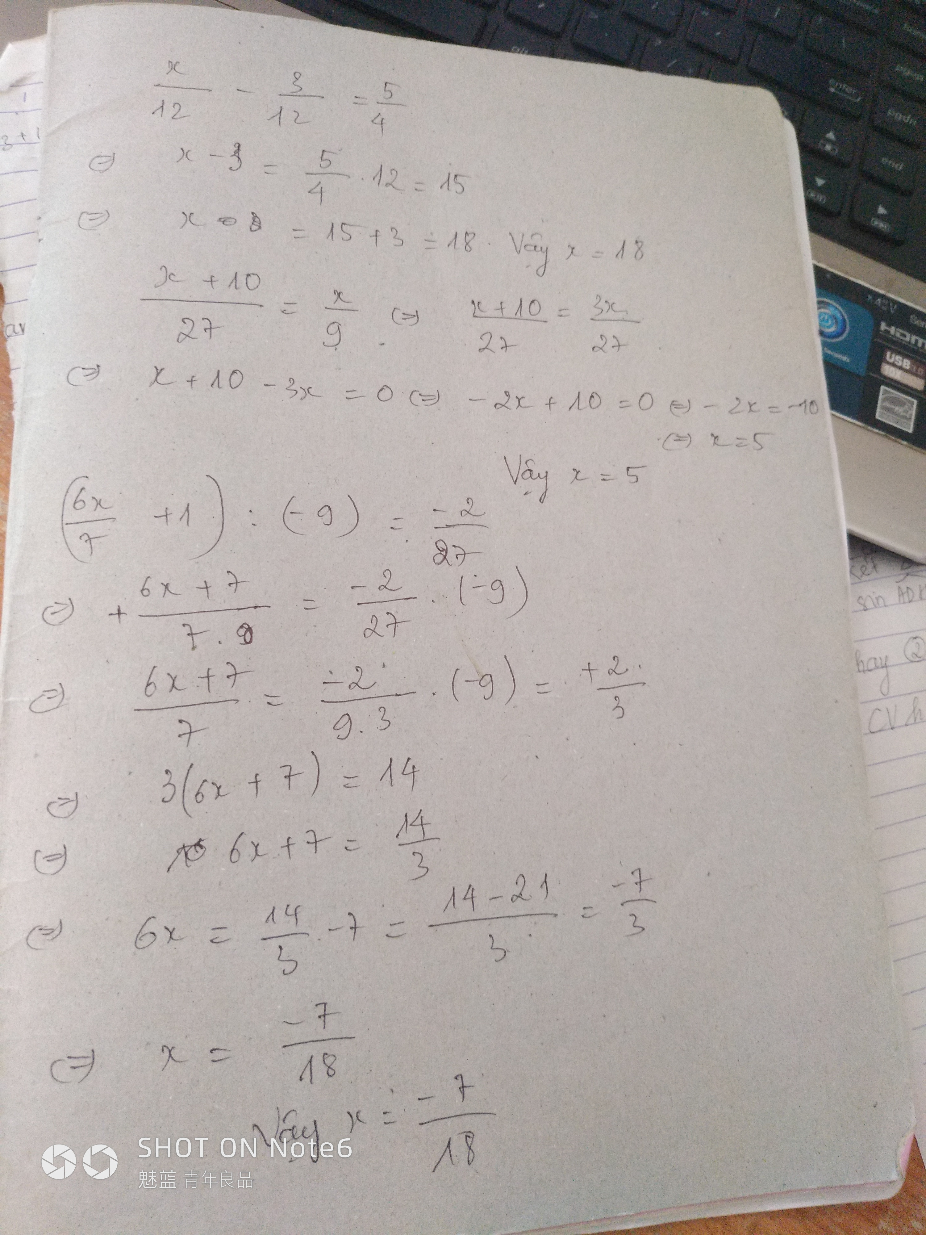 (\frac{{6x}}{7} + 1):( - 9) = \frac{{ - 2}}{{27}}\\
